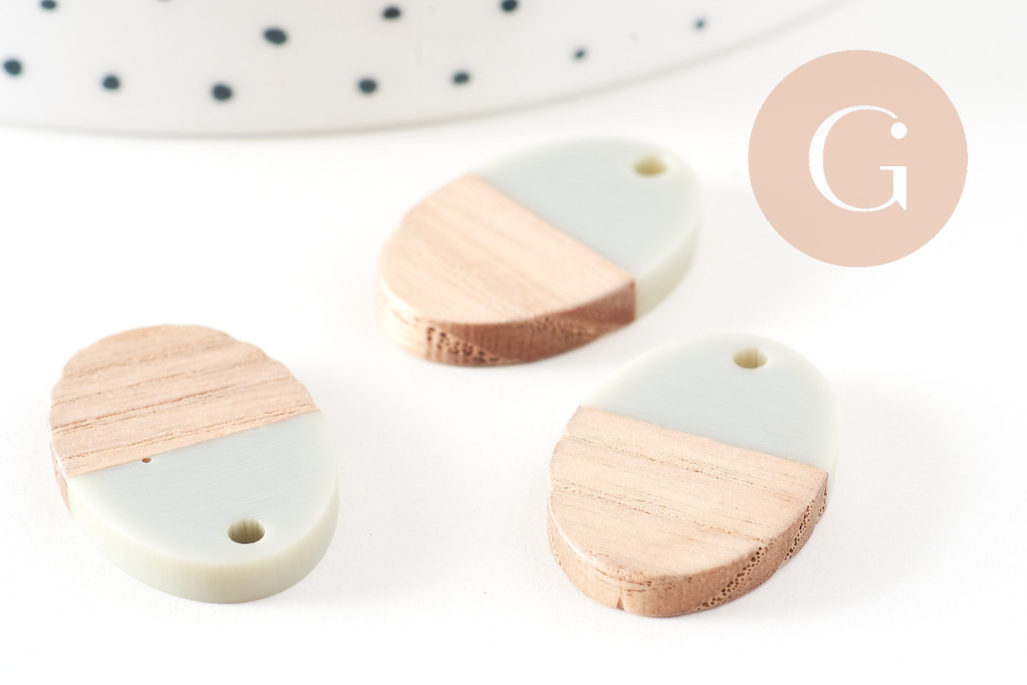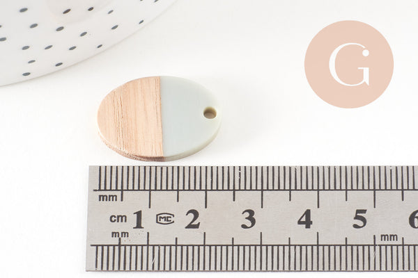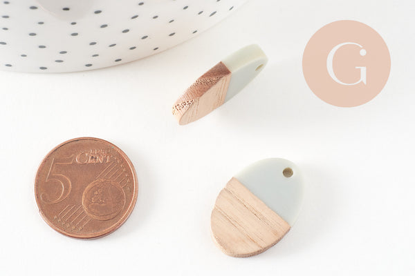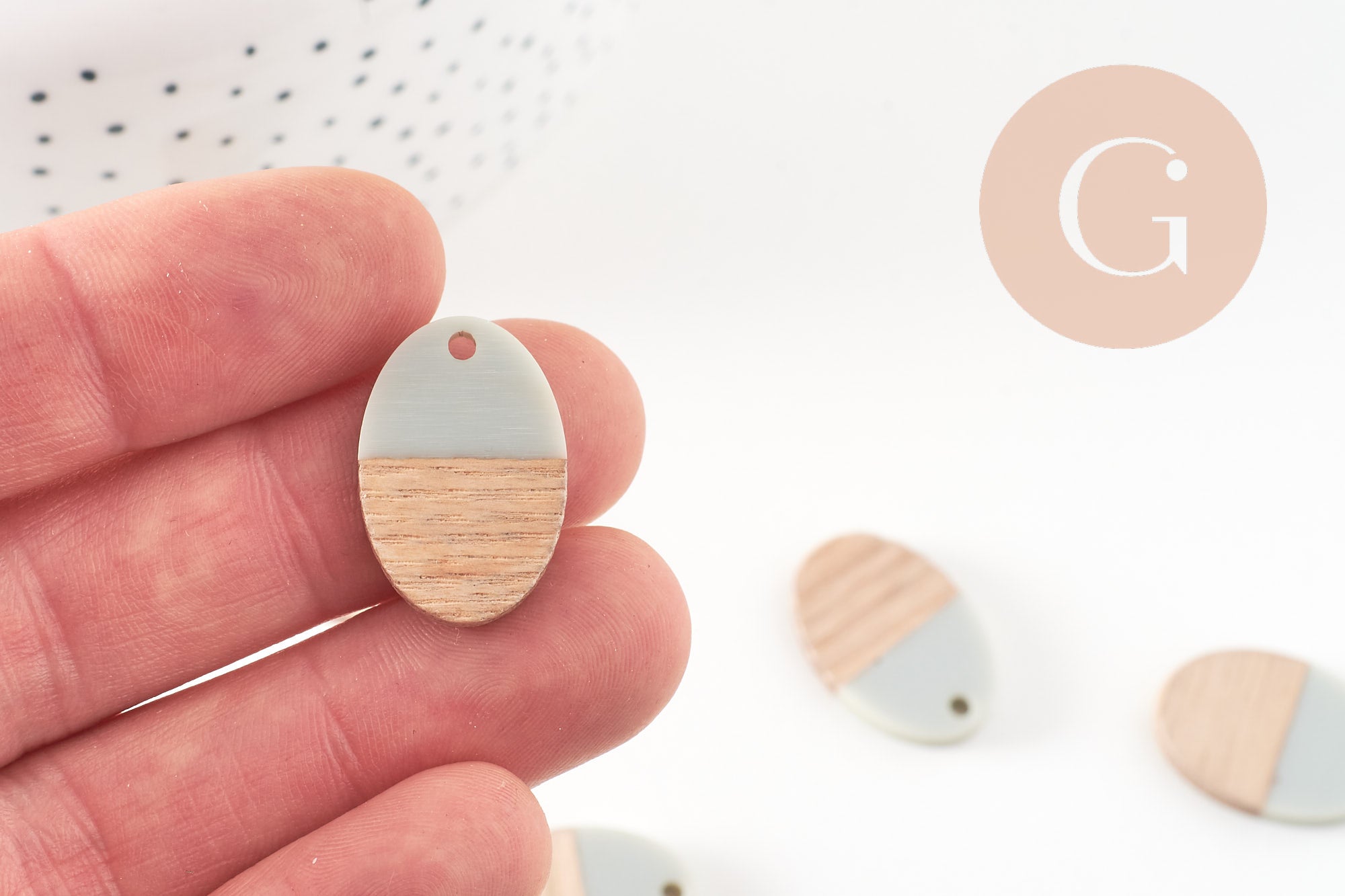 oval pendant wood resin rectangle gray, natural wood pearl, geometric pearl, pearl creation wood jewelry, 23mm, 5