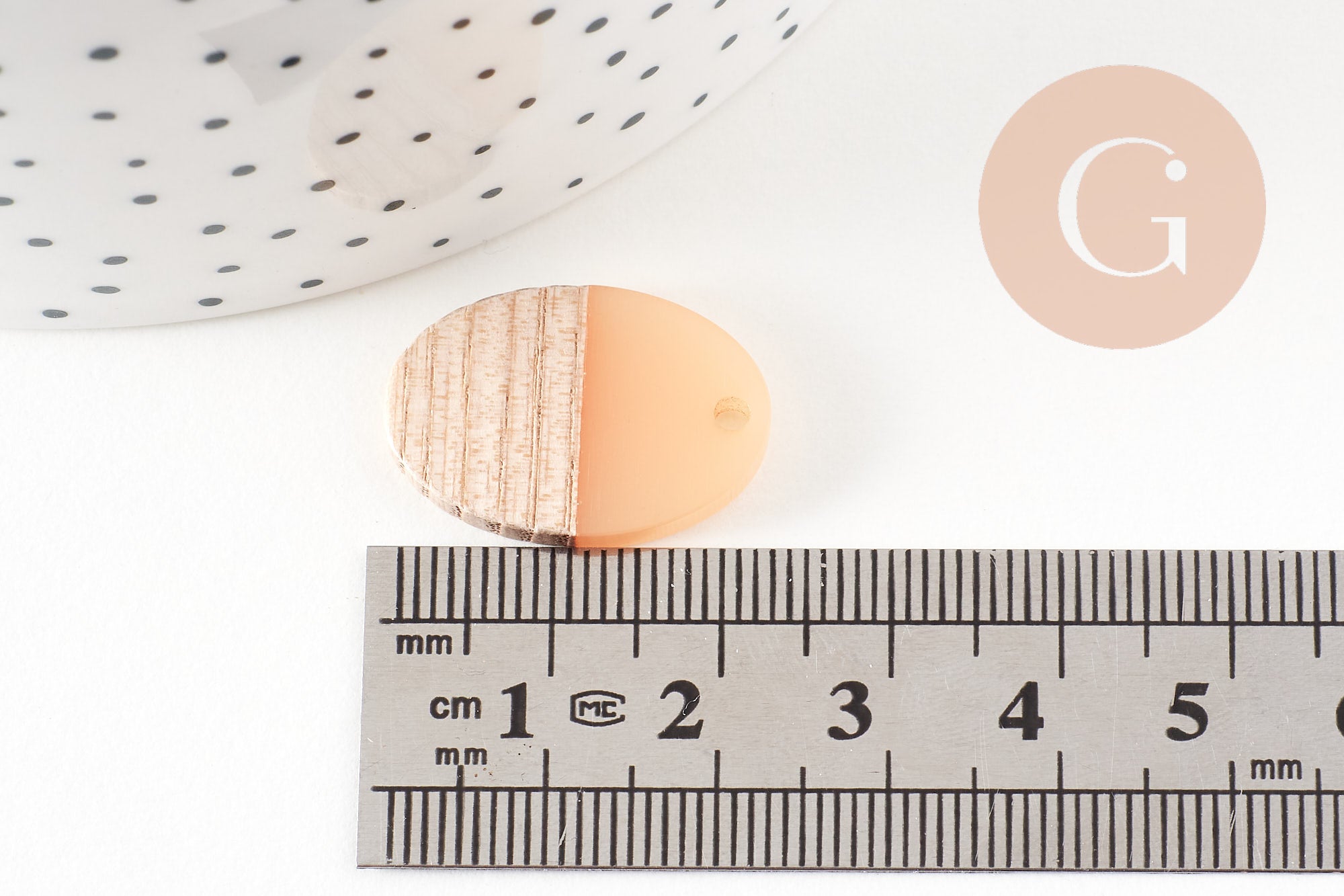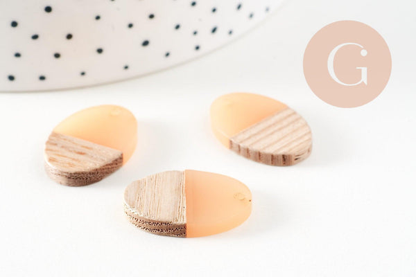 Oval pendant wood resin light pink, natural wood pearl, geometric pearl, pearl creation wood jewelry, 23mm, 5