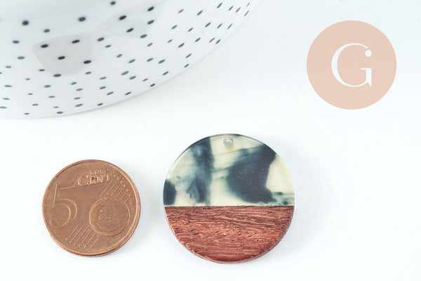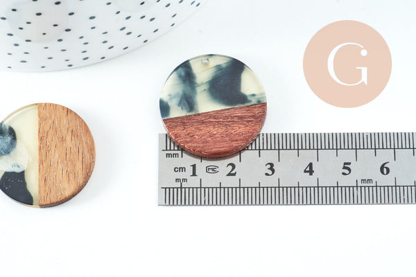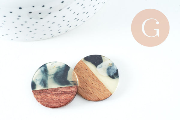 Pendentifs en bois de noyer résine taches, perle bois naturel, Perle géométrique,perle rectangle,création bijoux bois,28mm, x2 G4199