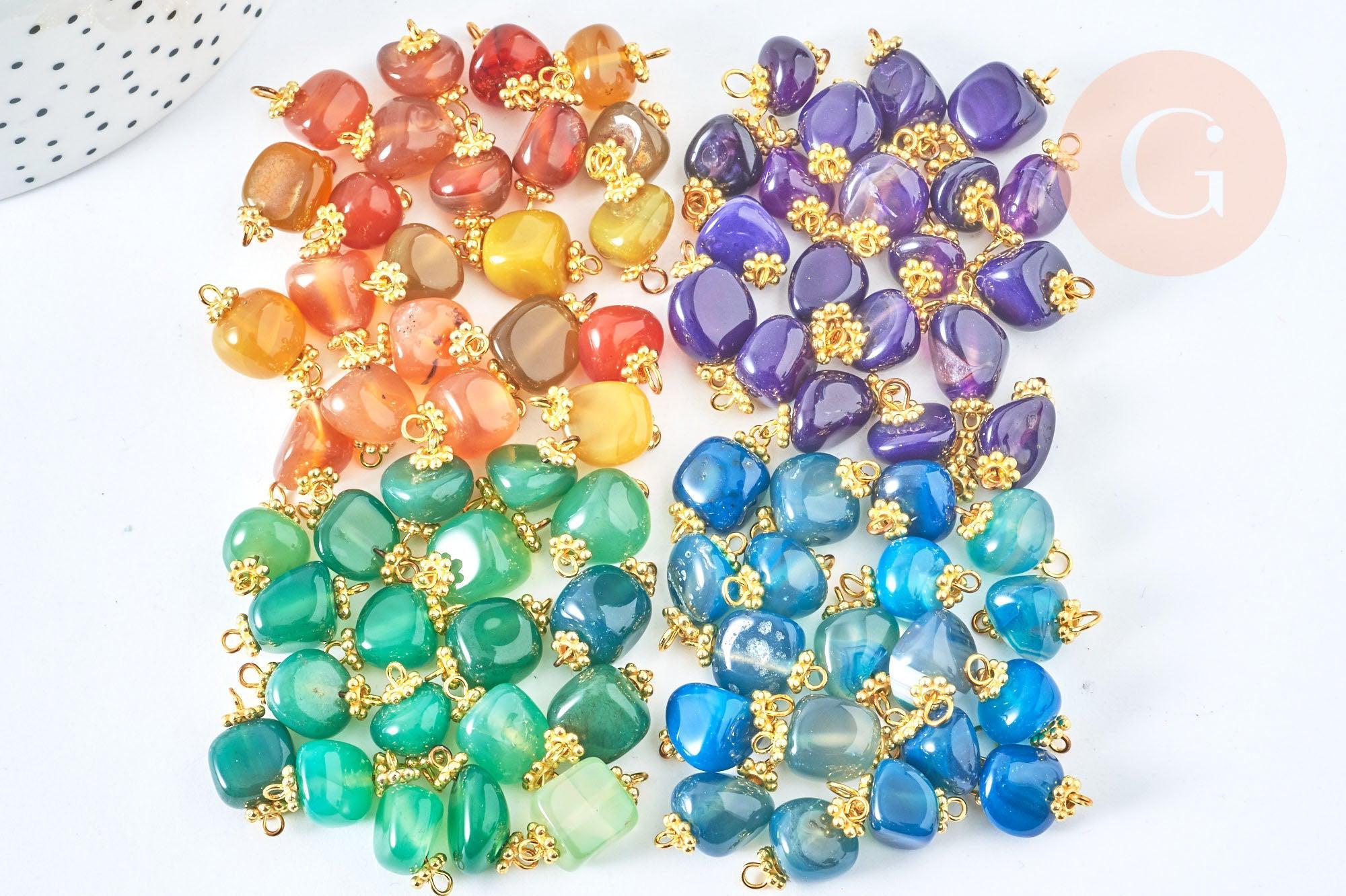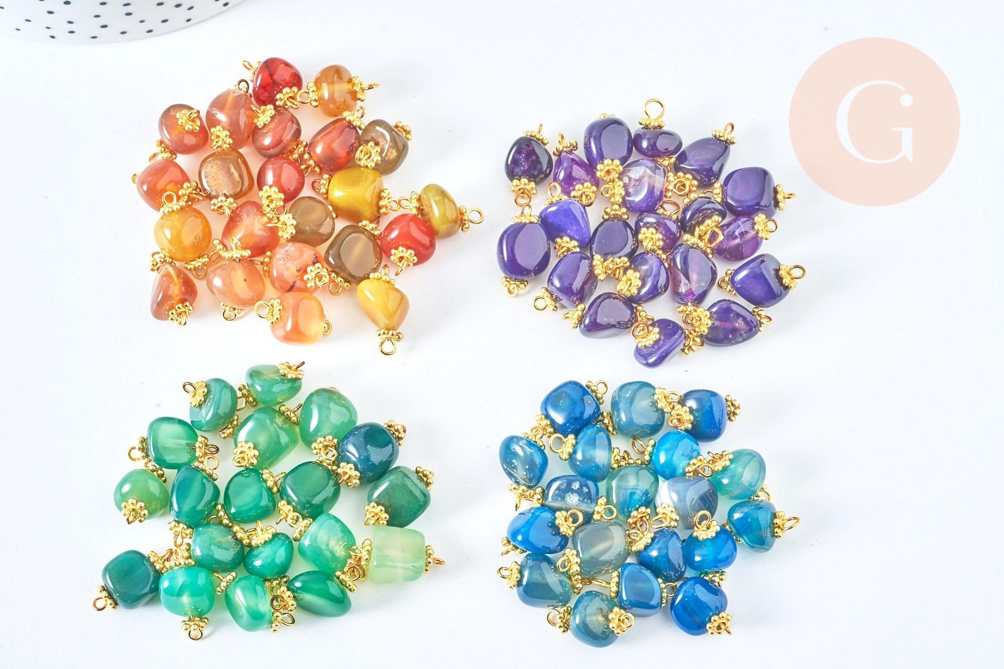 - Mount them one after the other, either loop on loop or with rings, in a chain to create a chain of stones. You can use just one color or take all 4 colors. Adjust your jewelry to make a necklace, a long necklace or a choker.