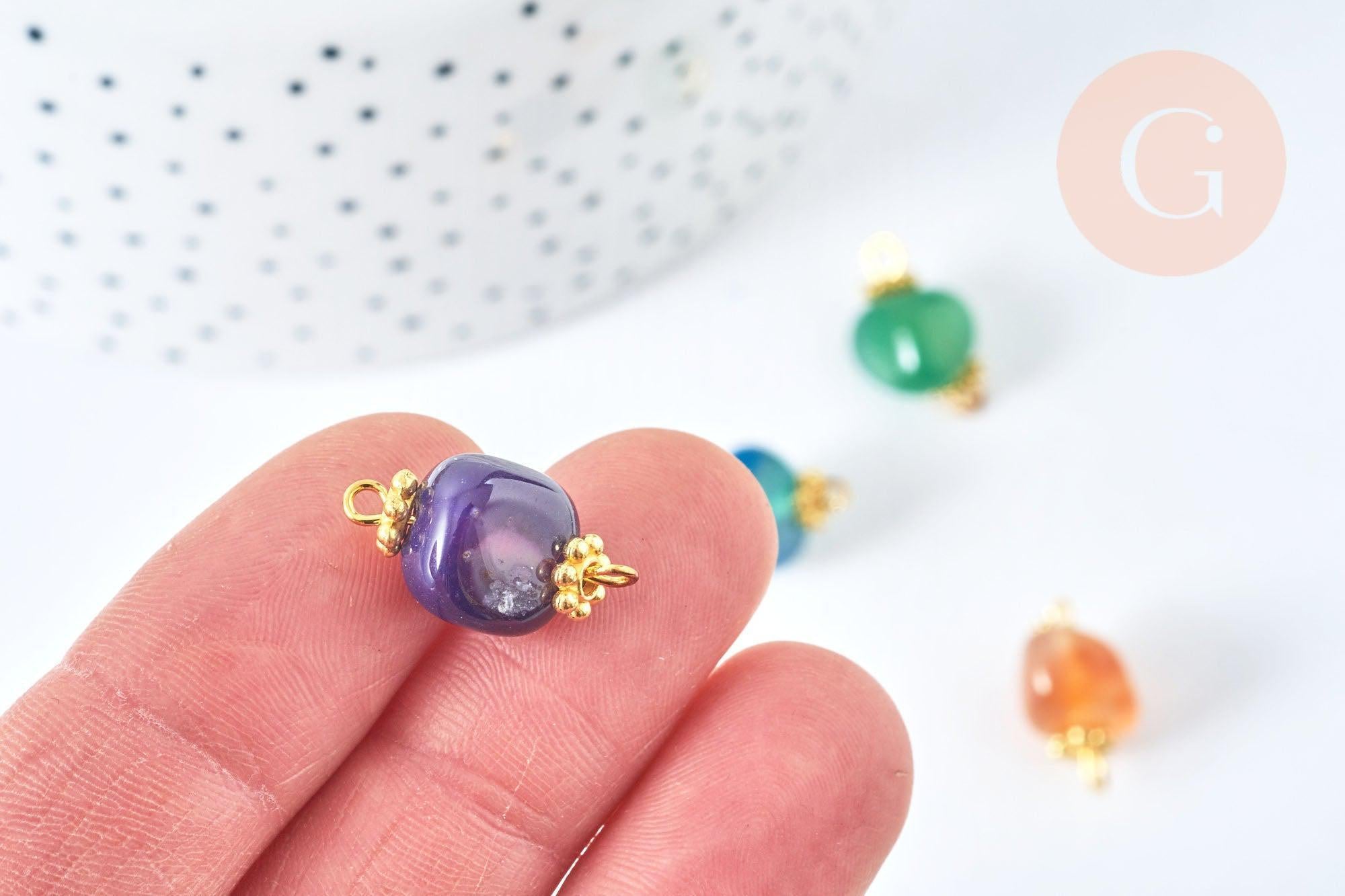 Make DIY costume jewelry with these real tinted agate connectors. These are mounted on a rod loops to allow you to attach them more quickly.