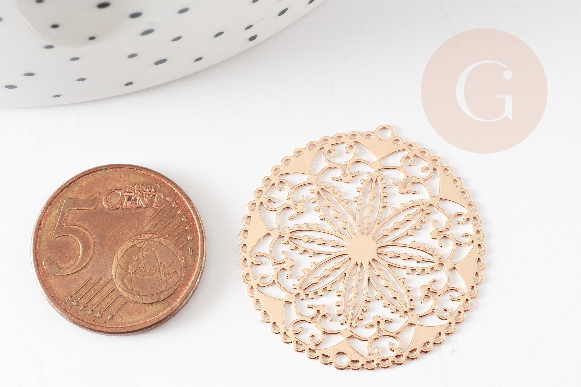 Pendentif estampe filigrane rond fleur laiton doré 31.5mm, Pendentif très fin et léger pour création de bijoux, x2 G9275