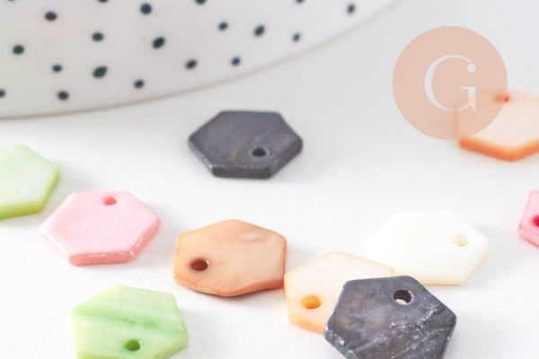 Mother-of-pearl hexagon charm, creative supply, hexagon pendant, colored shell, jewelry creation, geometric pendant, 12mm, set of 10