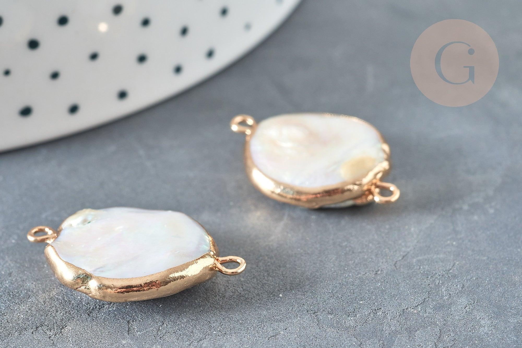 Pendentif connecteur perle eau douce naturelle fer doré 22-32mm, x1 (G7350)