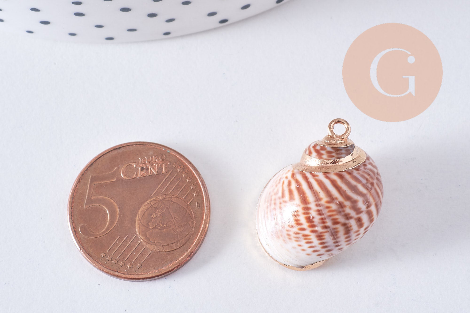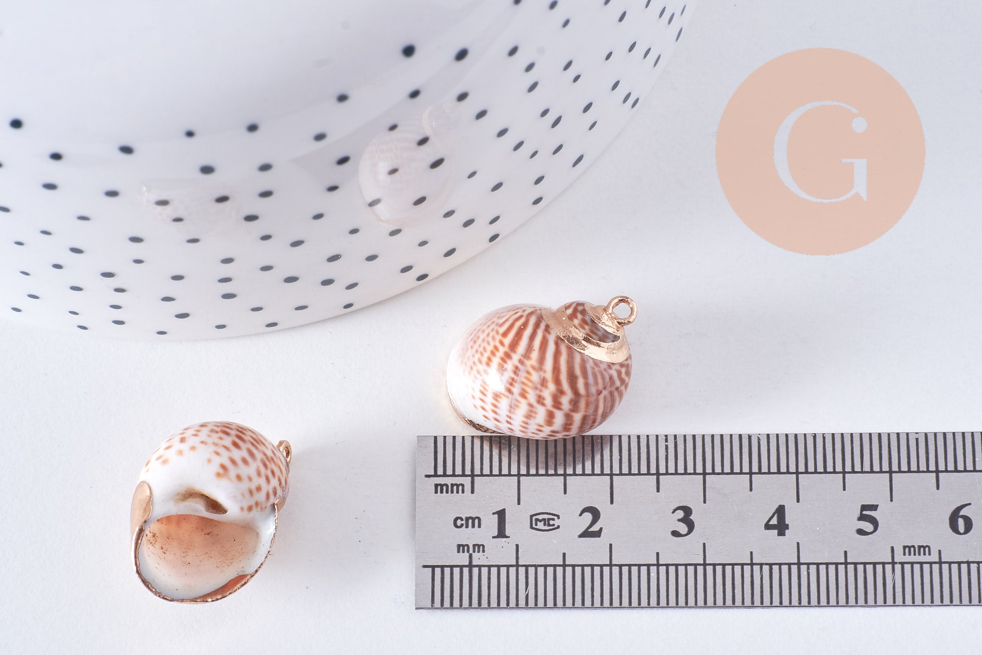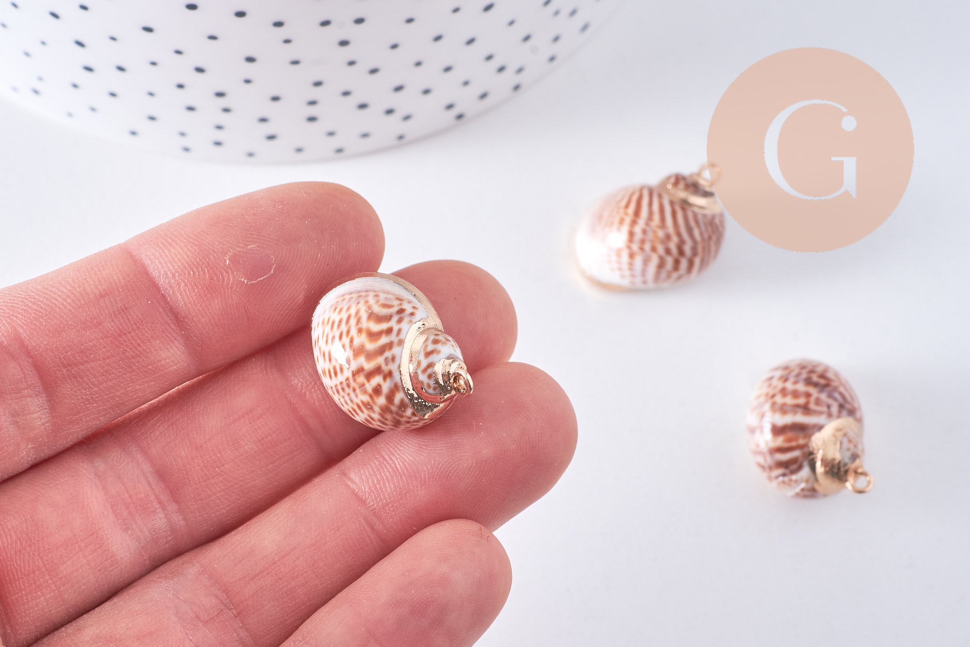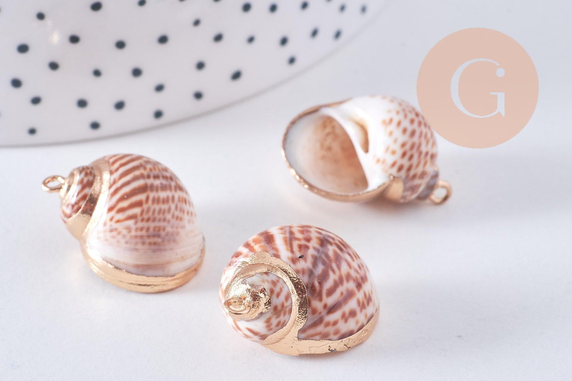 Fall for this natural shell pendant with golden edges , perfect for your DIY costume jewelry creations. Each piece is unique, with its natural beige shades and golden highlights that will bring an exotic and refined touch to your creations.