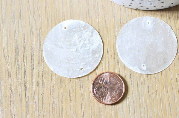 White mother-of-pearl round connector pendant 2 holes, shell pendant, white shell, natural shell, jewelry creation, 40mm, lot 5