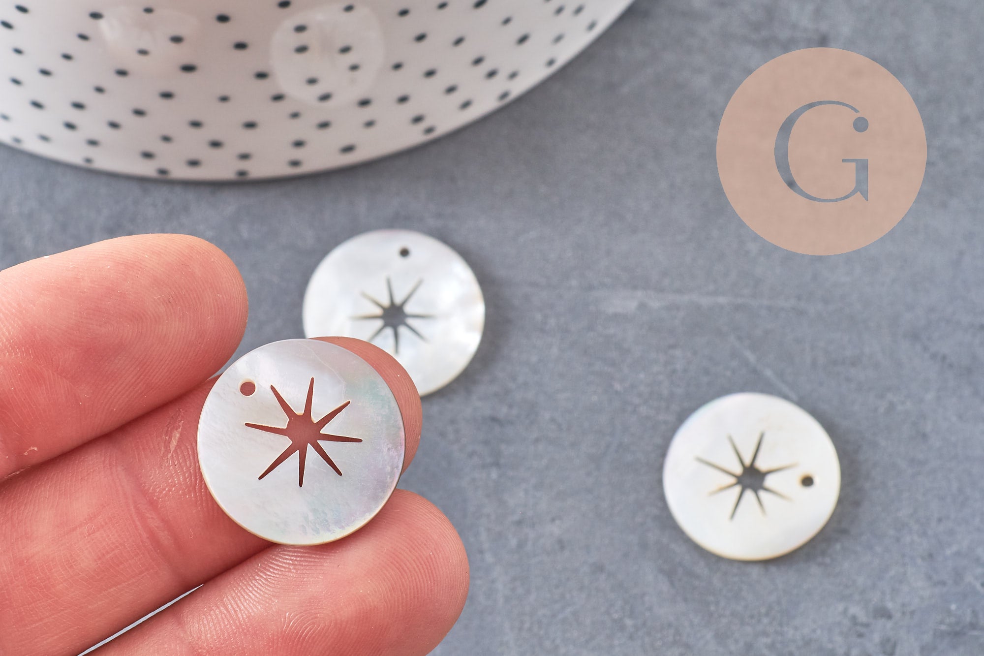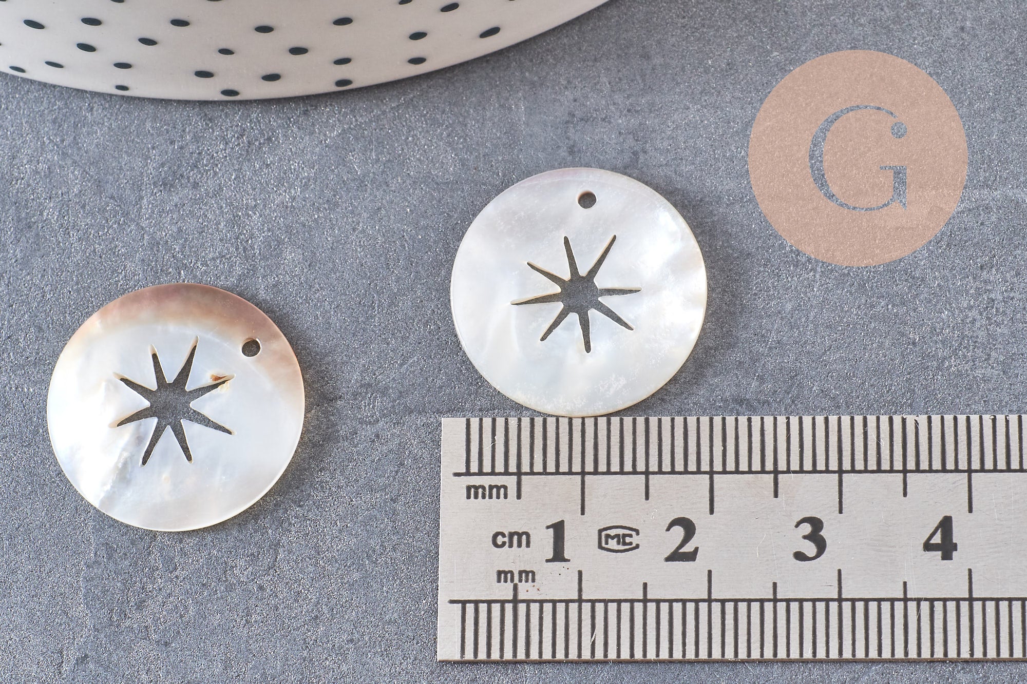 Round mother-of-pearl star pendant, shell pendant, beige shell, natural shell, jewelry creation, 20mm, star, set of 5