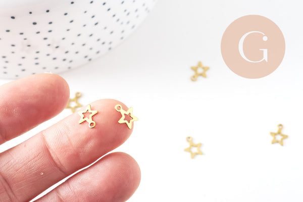 Breloque étoile laiton brut , fournitures créatives, pendentif sans nickel, pendentif geometrique,9mm, X50 G1662