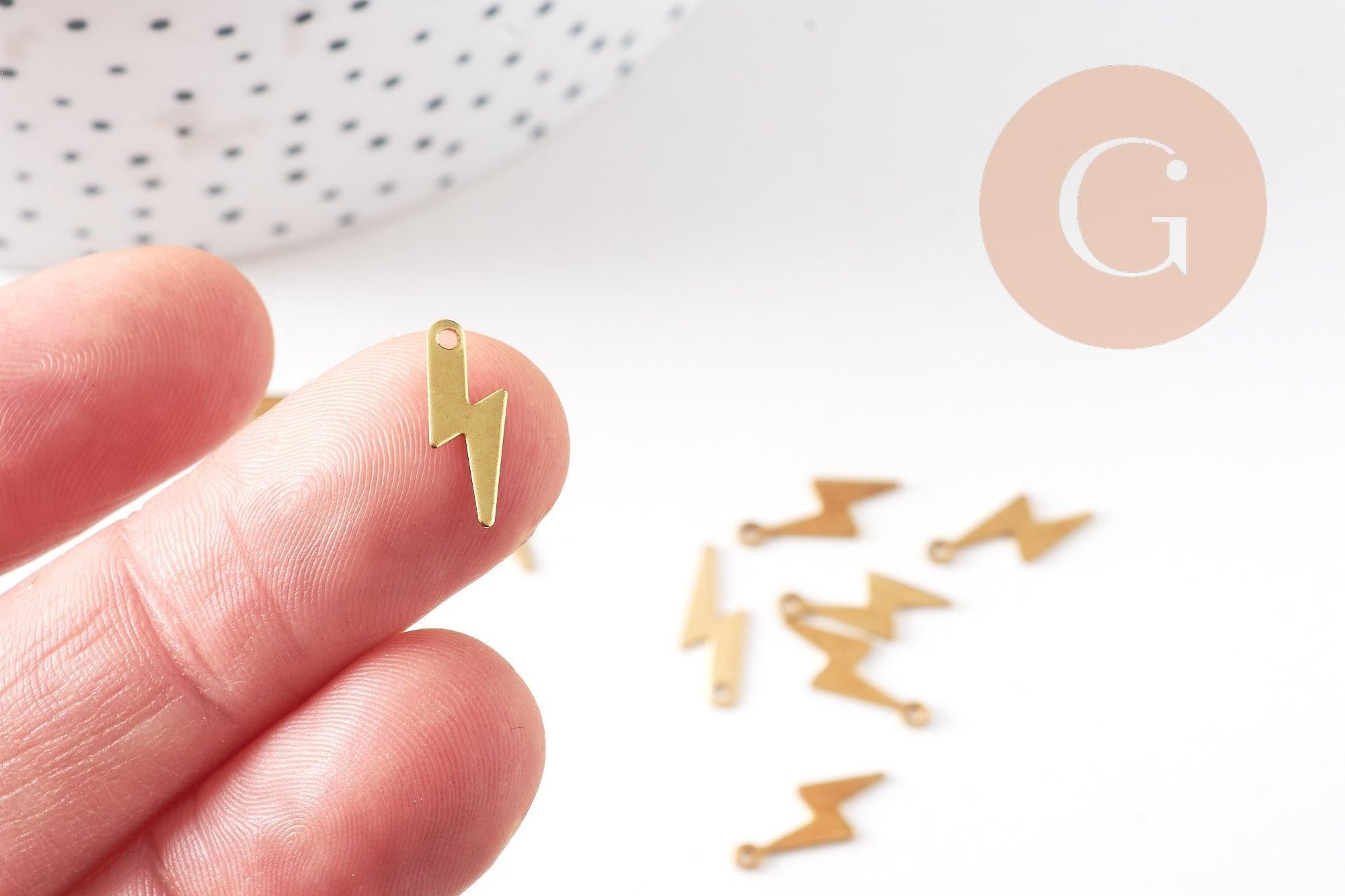 Raw brass lightning bolt charms, raw brass supply, lightning bolt pendant, nickel free, lightning bolt pendant, jewelry creation, lot of 50, 14mm