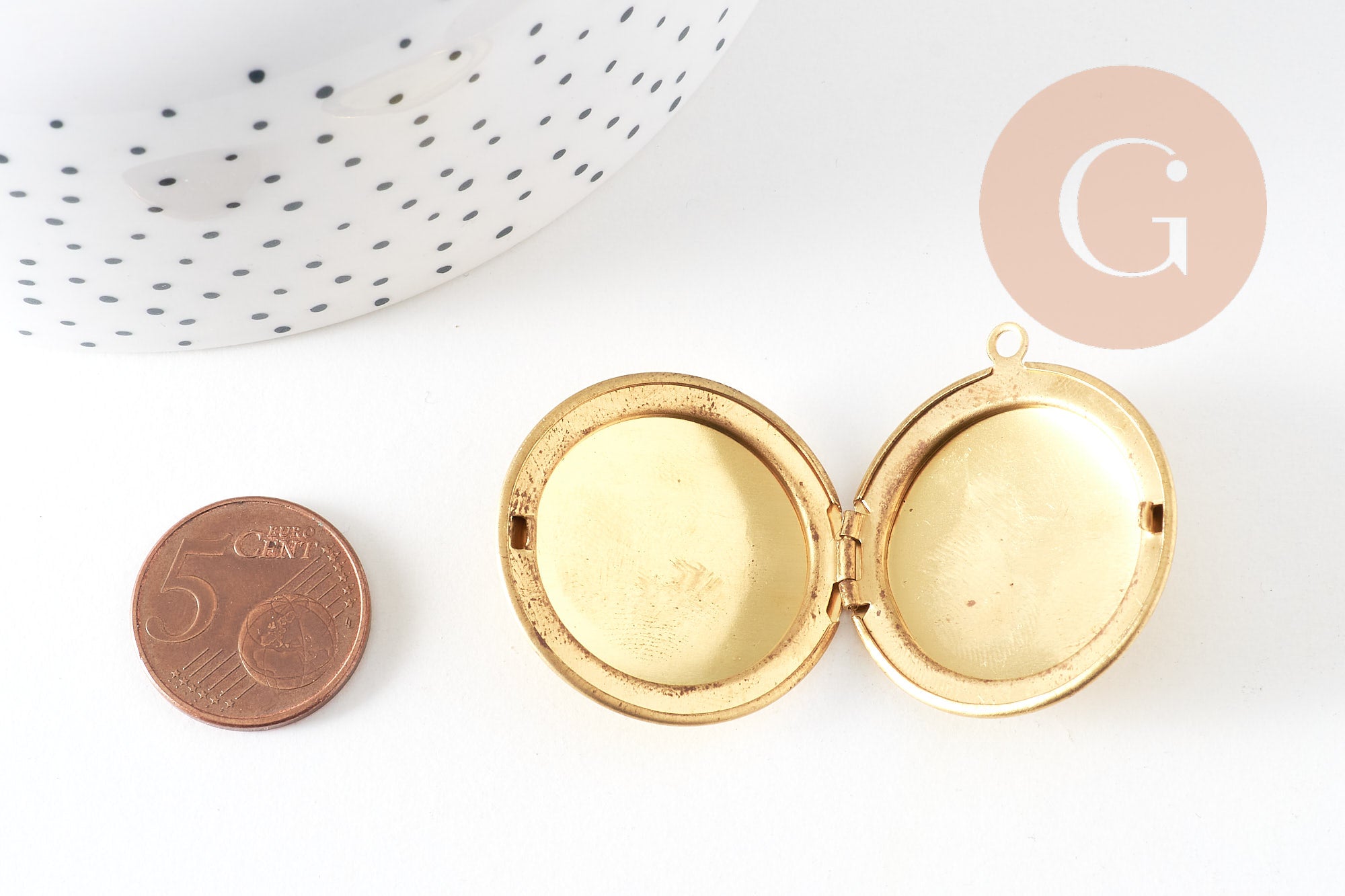 A pretty round locket pendant in raw brass .
