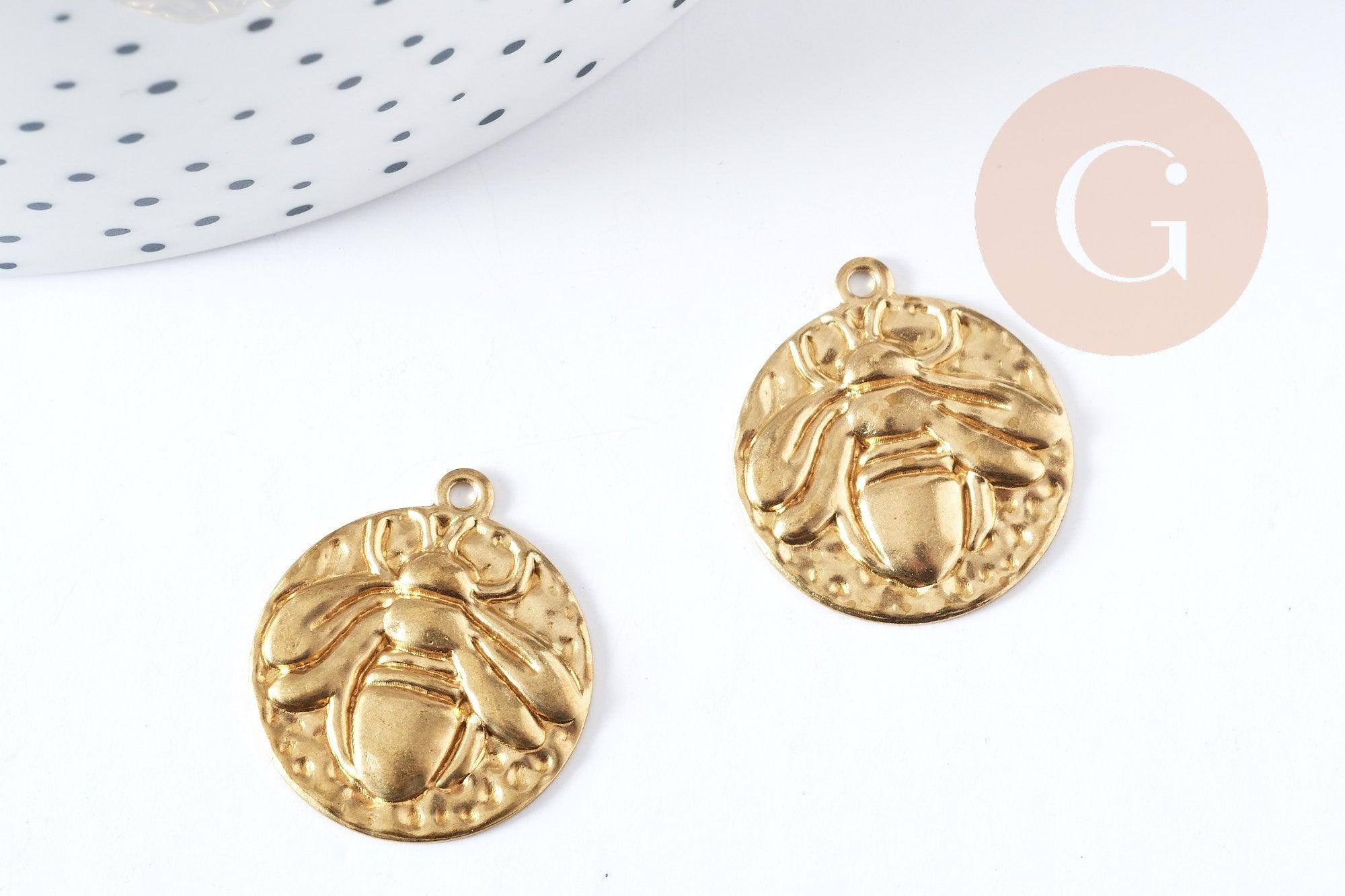 Pendentif médaille abeille laiton brut 20mm,création bijoux laiton brut, x1 G7693