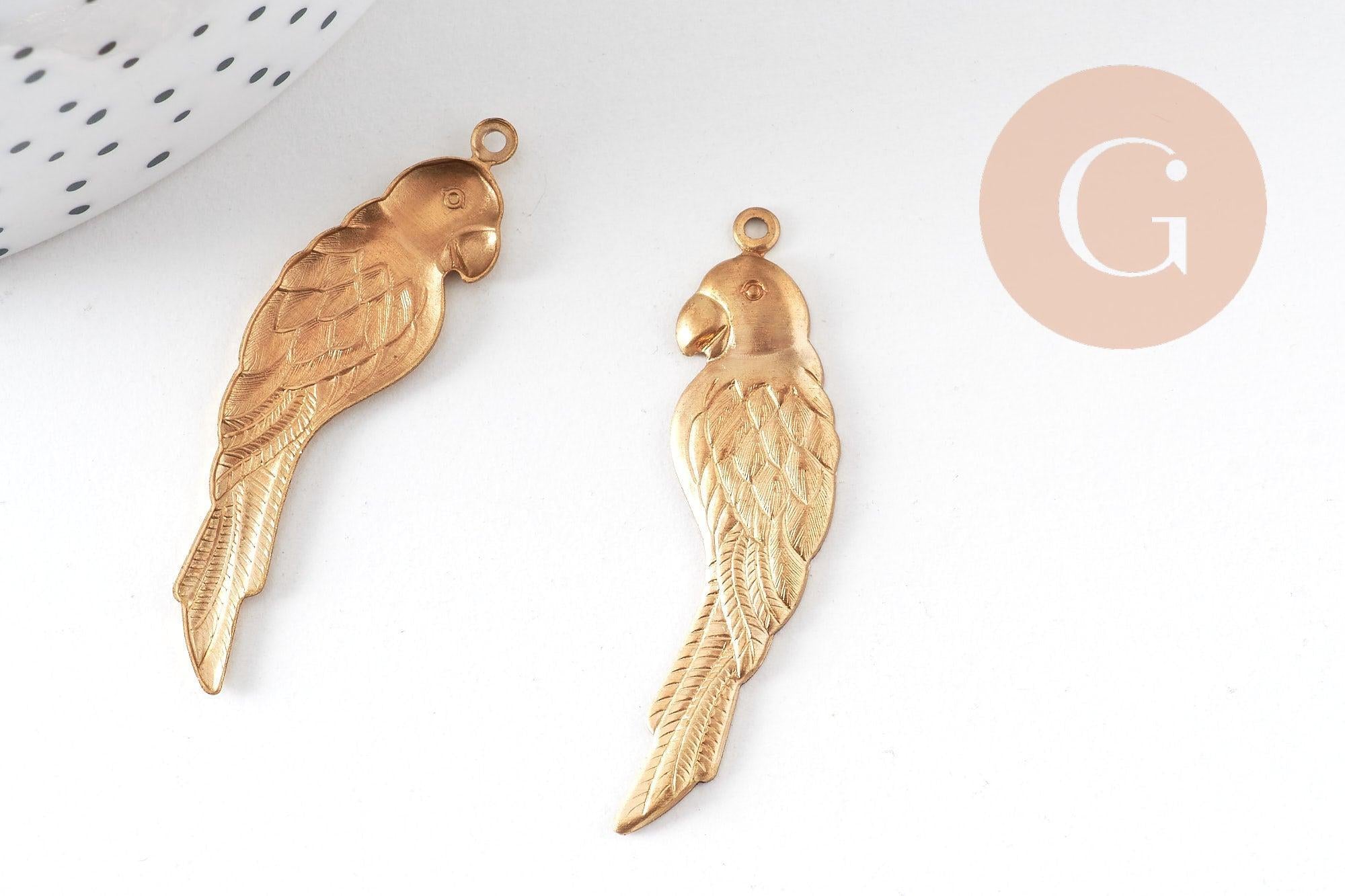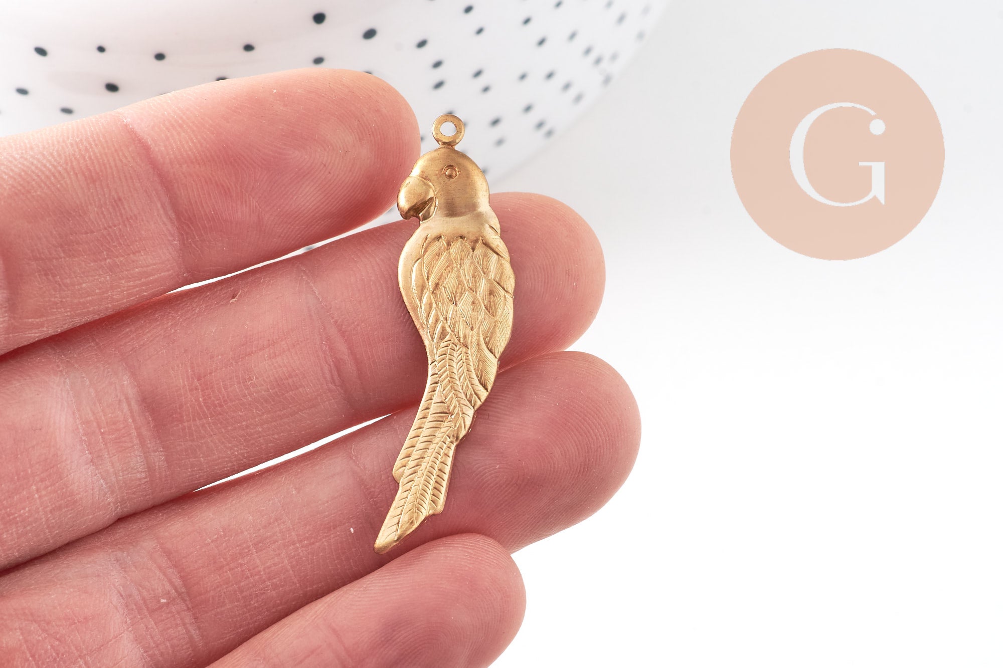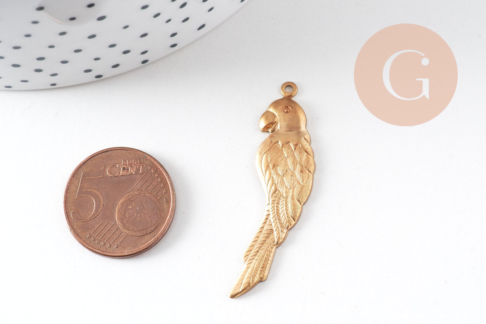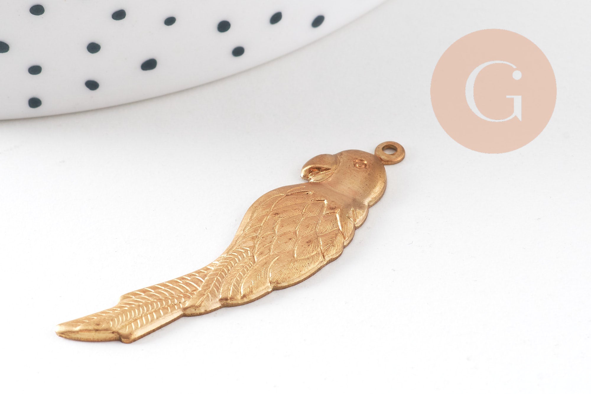 Parrot pendant in golden raw brass, creative supplies, Vintage medallion, necklace creation, raw brass supplies, 41mm
