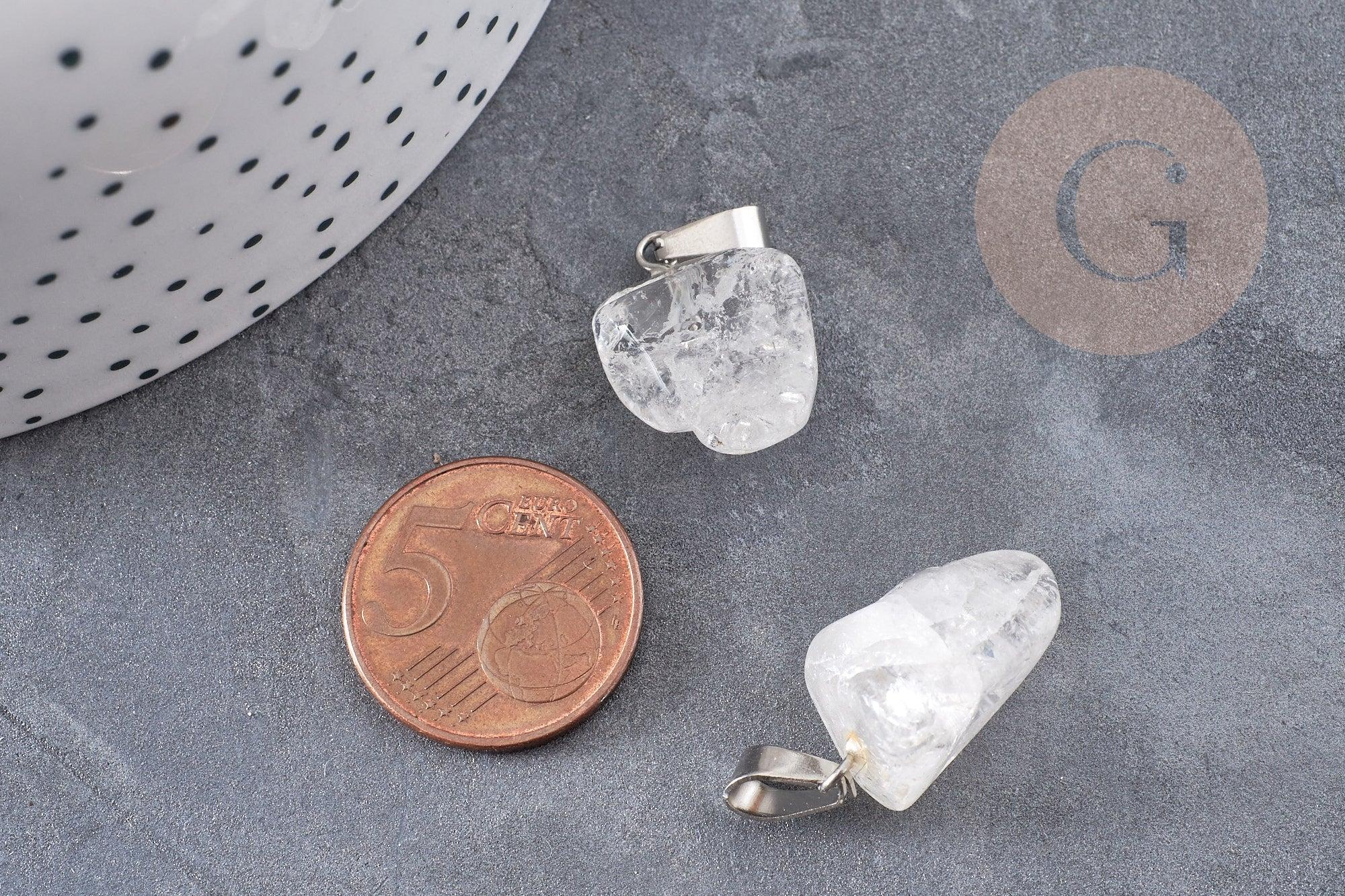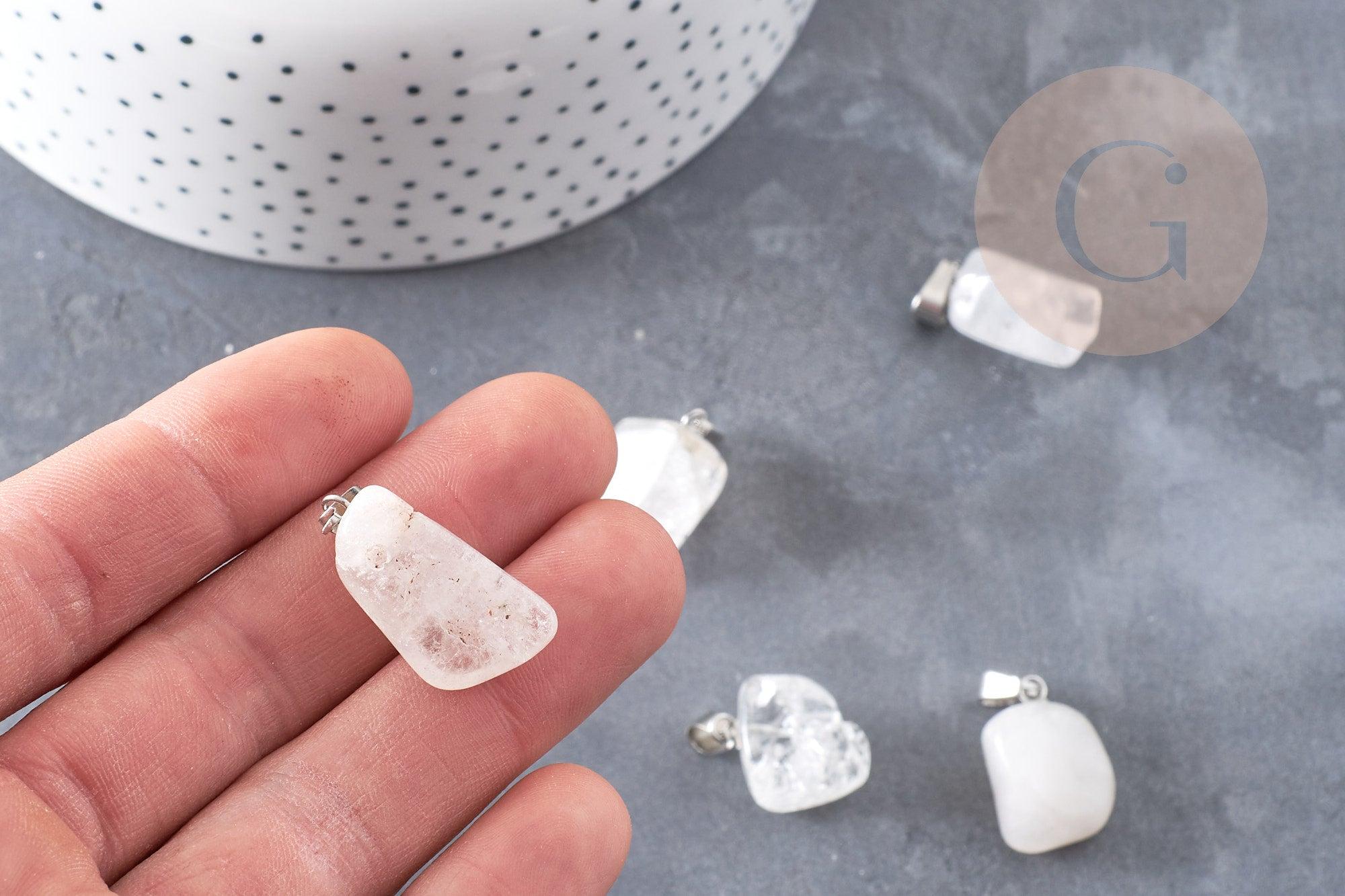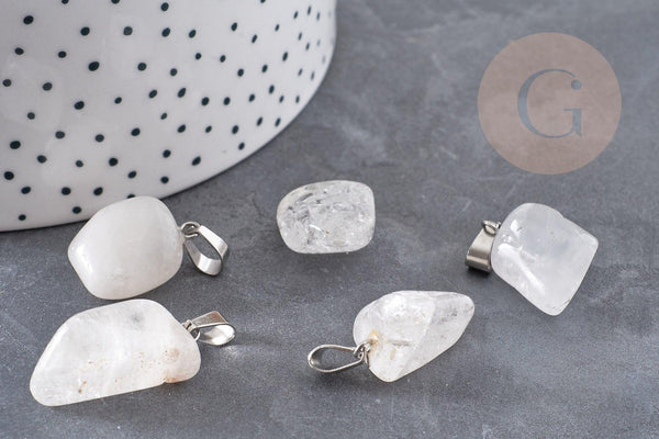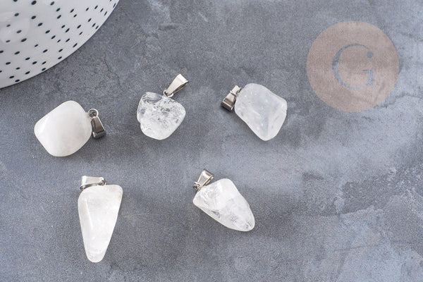 Pendentif cristal de roche roulé acier platine, pendentif pierre acier inoxydable, bijou pendentif pierre naturelle,15-35mm, x1 G4044