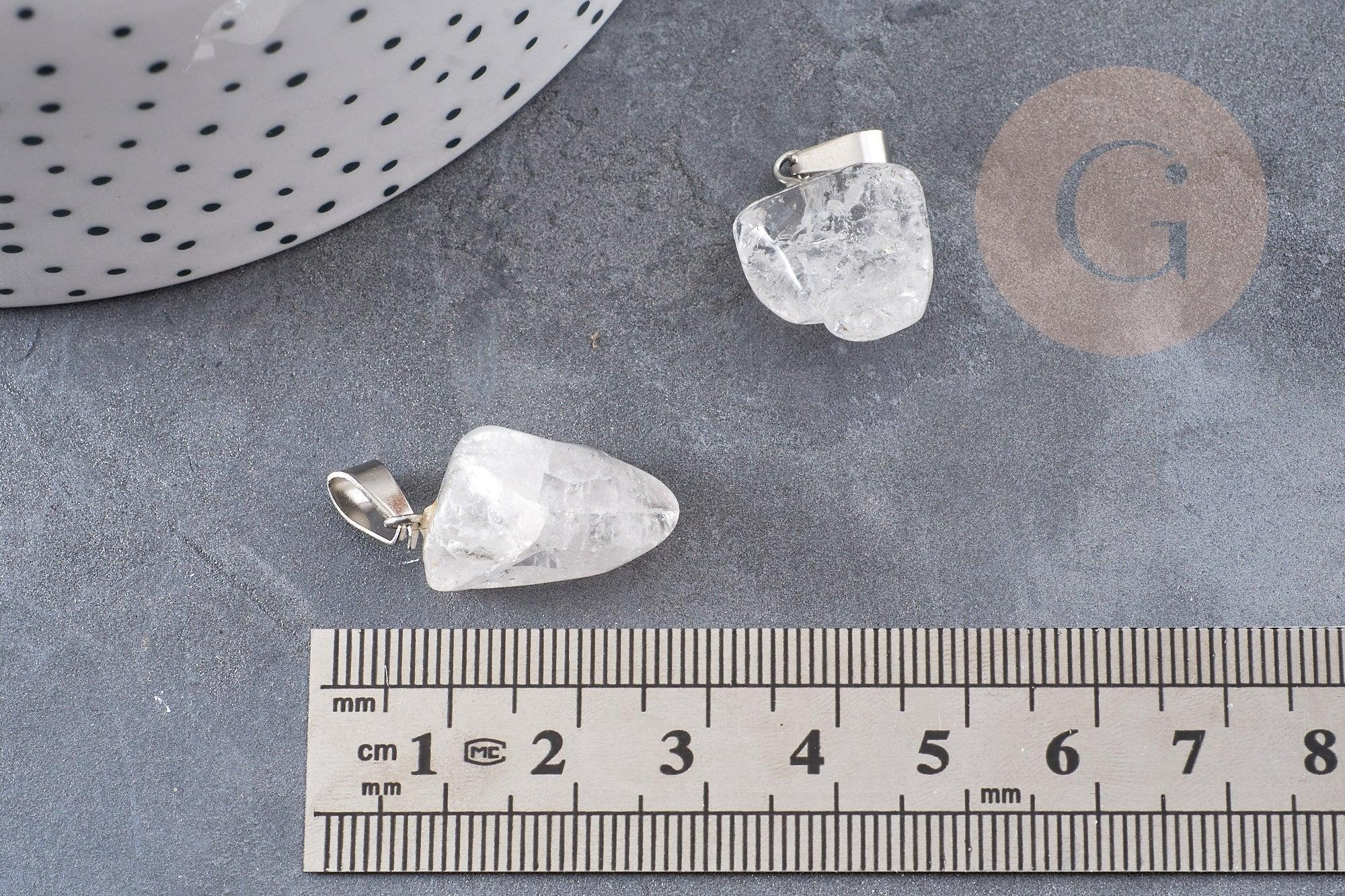 Rolled rock crystal pendant in platinum steel, stainless steel stone pendant, natural stone pendant jewelry, 15-35mm, x1 G4044
