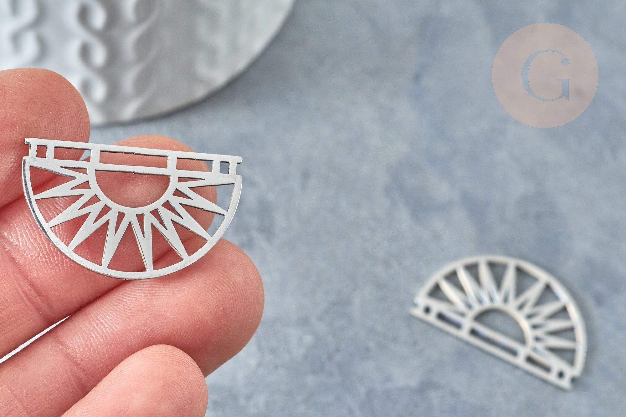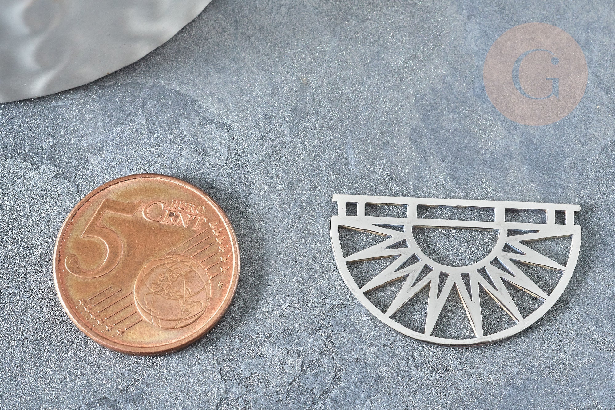 A half-circle sun connector pendant in stainless steel silver. An adorable golden pendant to use in all your bracelet and necklace creations.