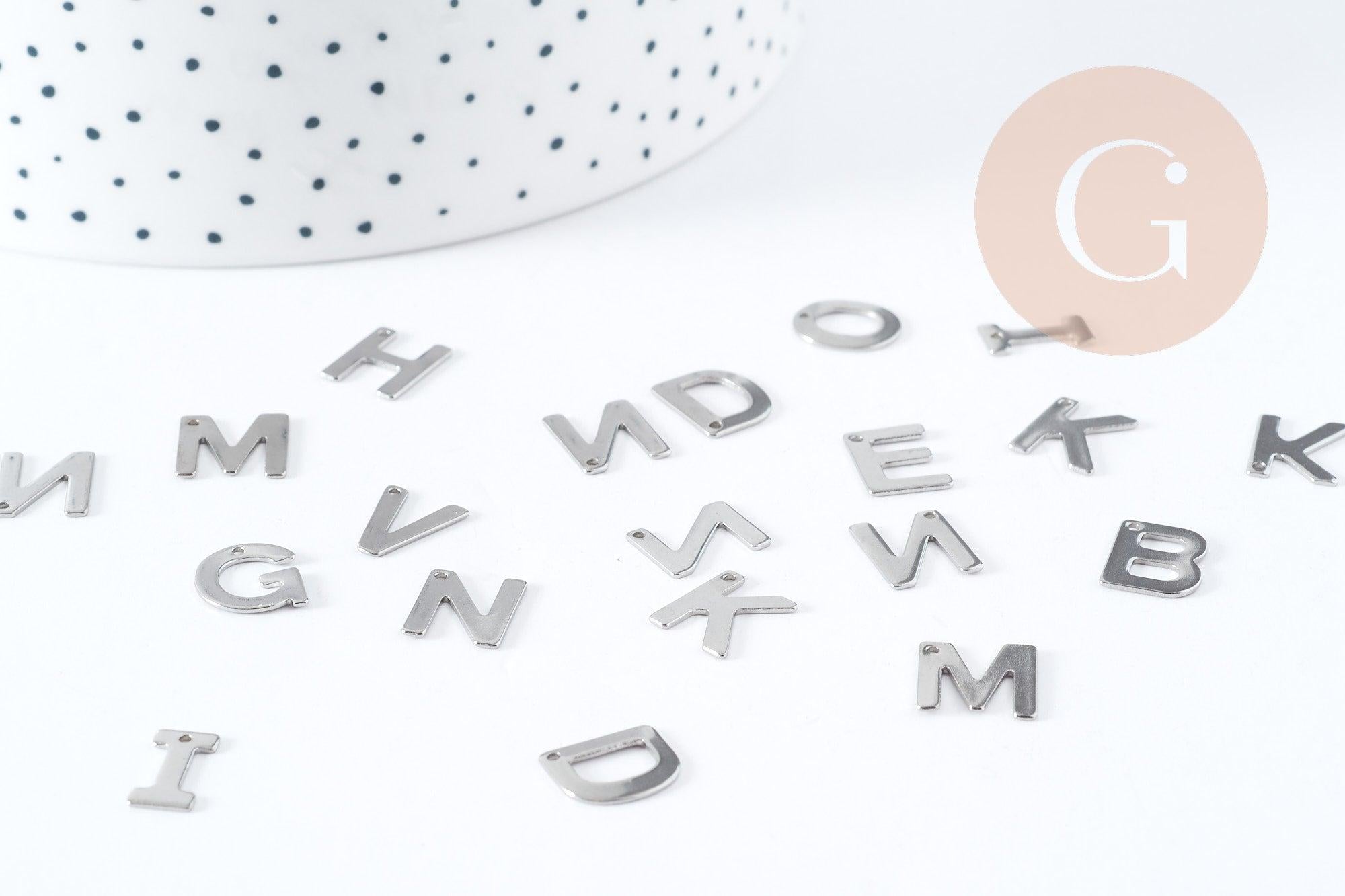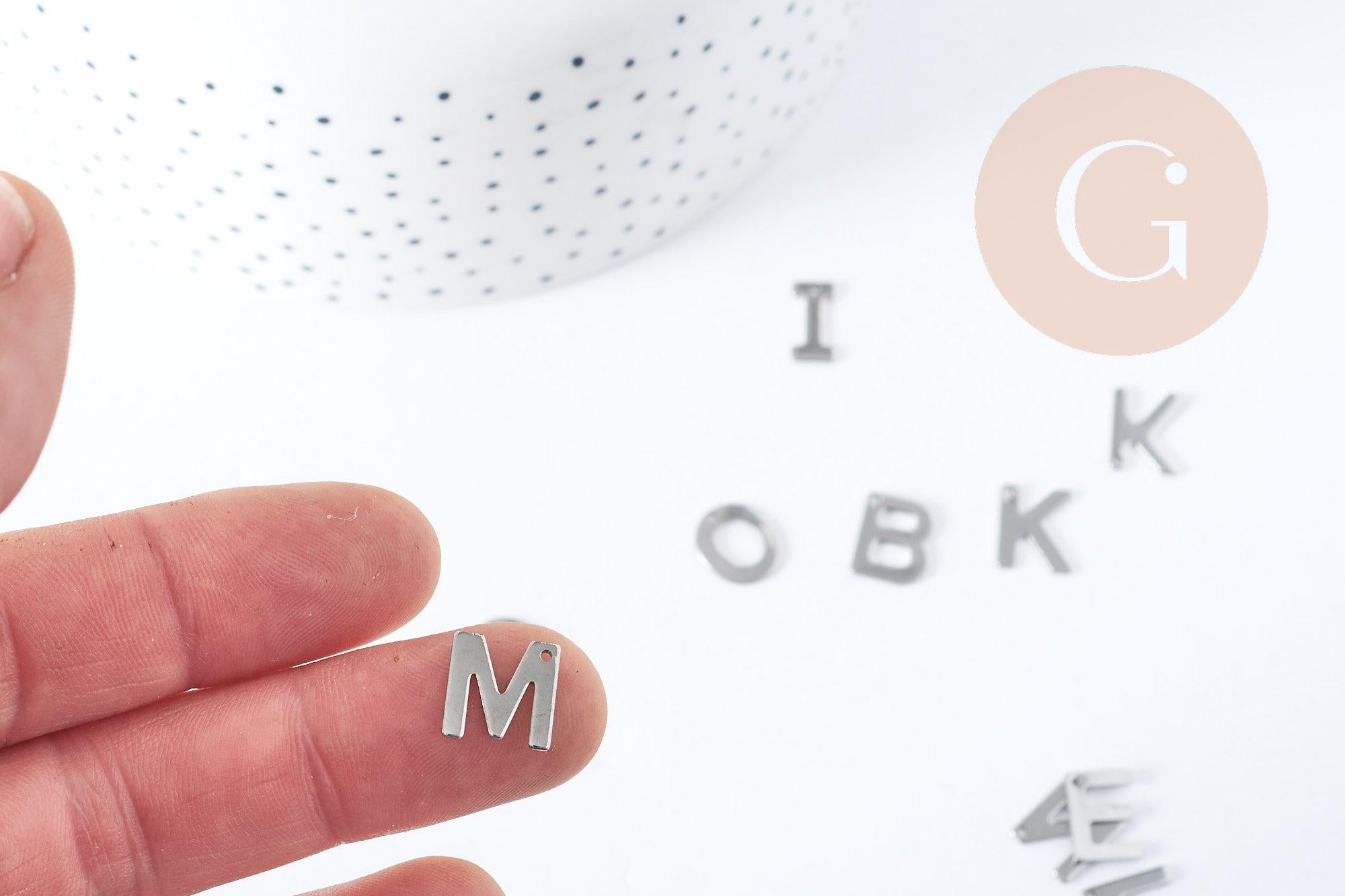 This silver stainless steel alphabet letter charm represents the alphabet in lowercase. Simple and modern, this charm will inspire you to create personalized jewelry for men or women . It's up to you to create pretty DIY costume jewelry !