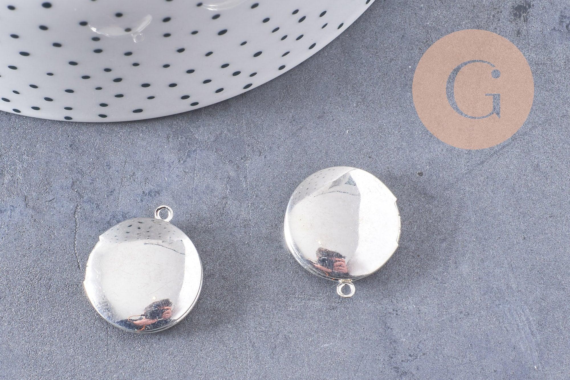 Pendentif locket medaillon zamac argenté 20mm, pendentif locket pour création bijou souvenir x2 (G1514)