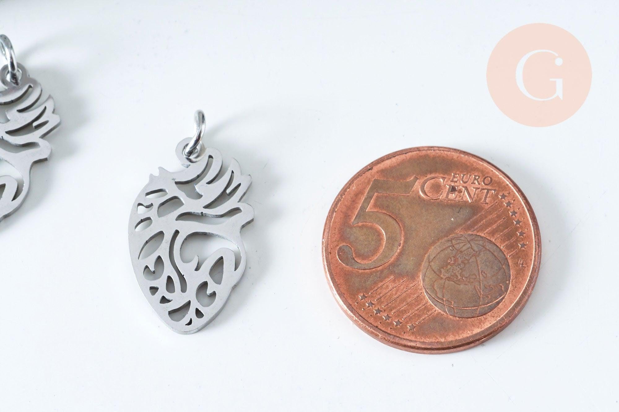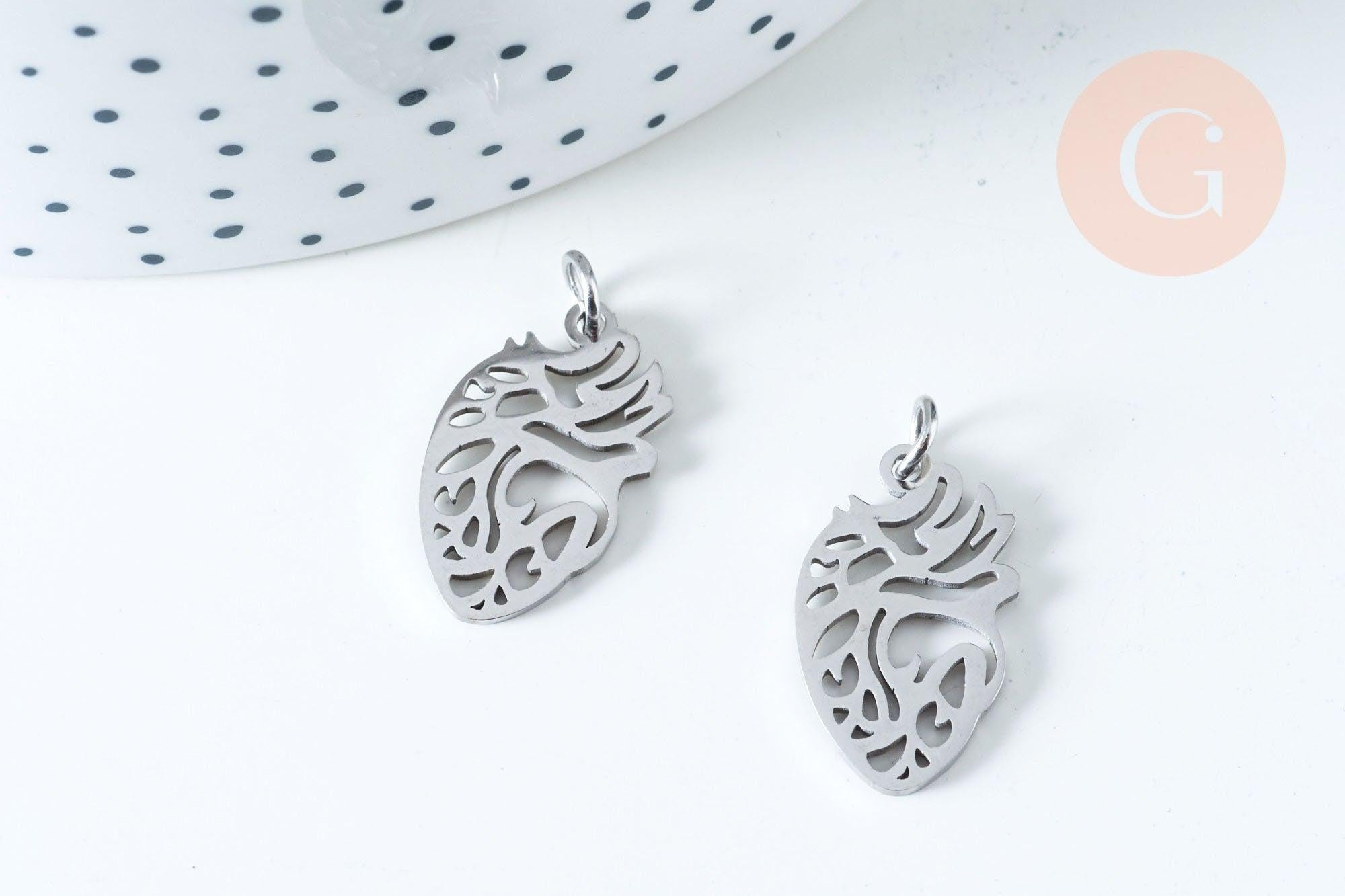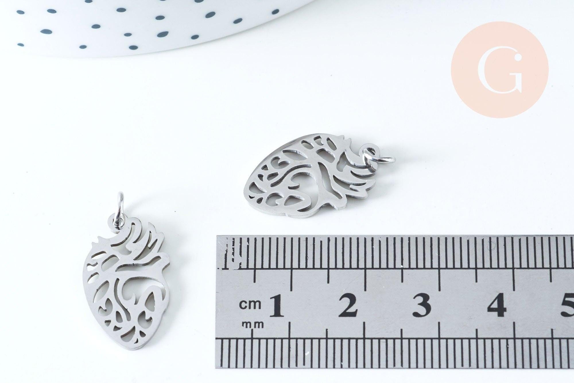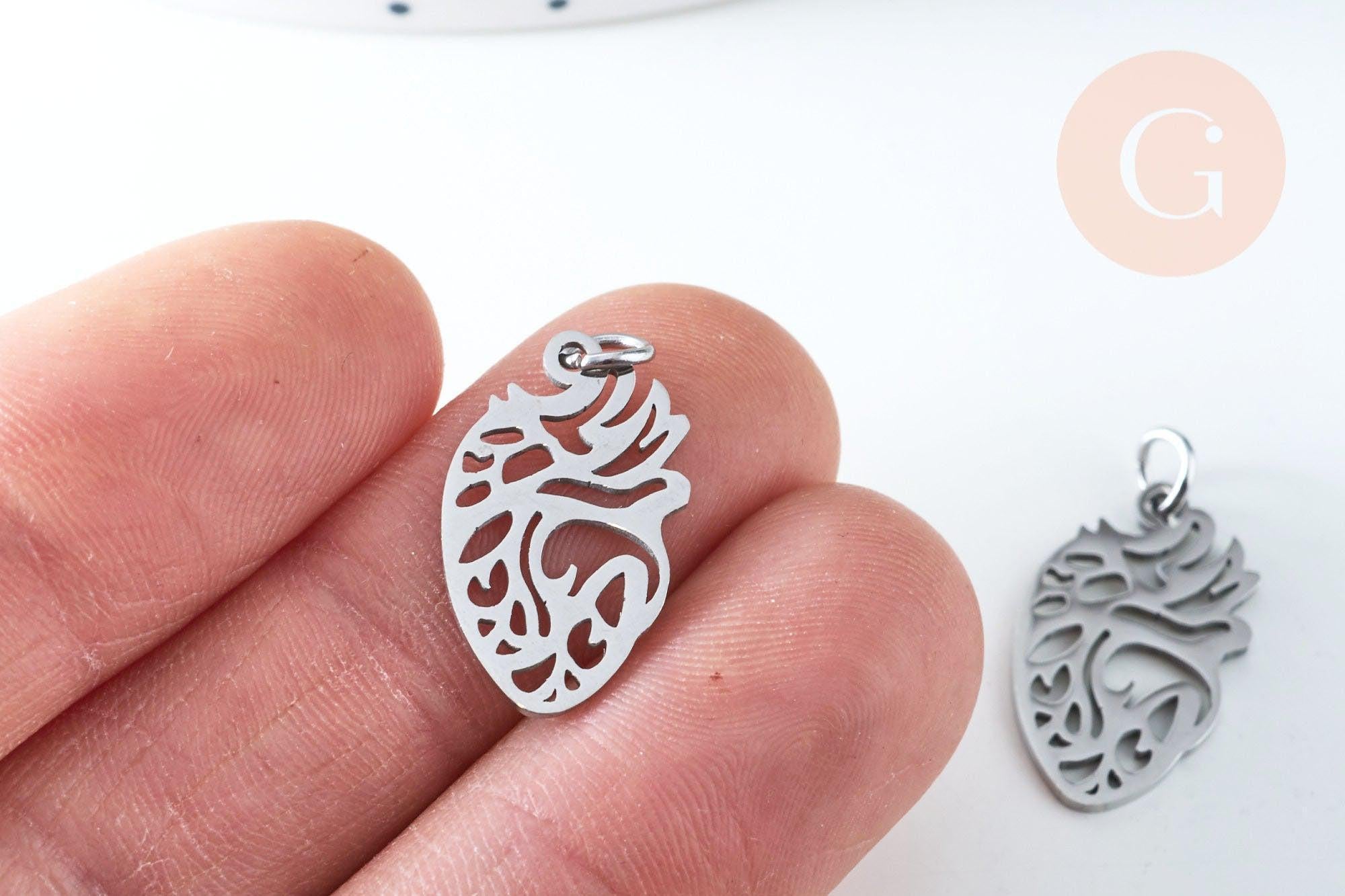 Pendentif organe coeur évidé en acier argenté 20mm, acier inoxydable,pendentif sans nickel, création bijoux, x1 G6349