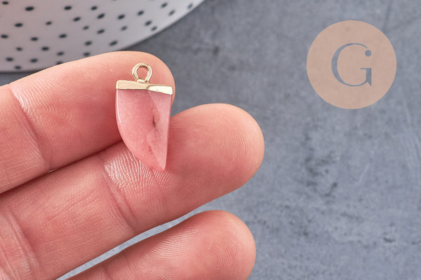 Fall for this little coral pink tinted jade pendant with its golden support.