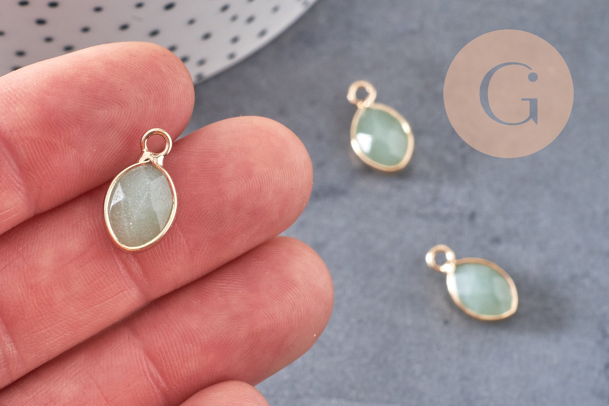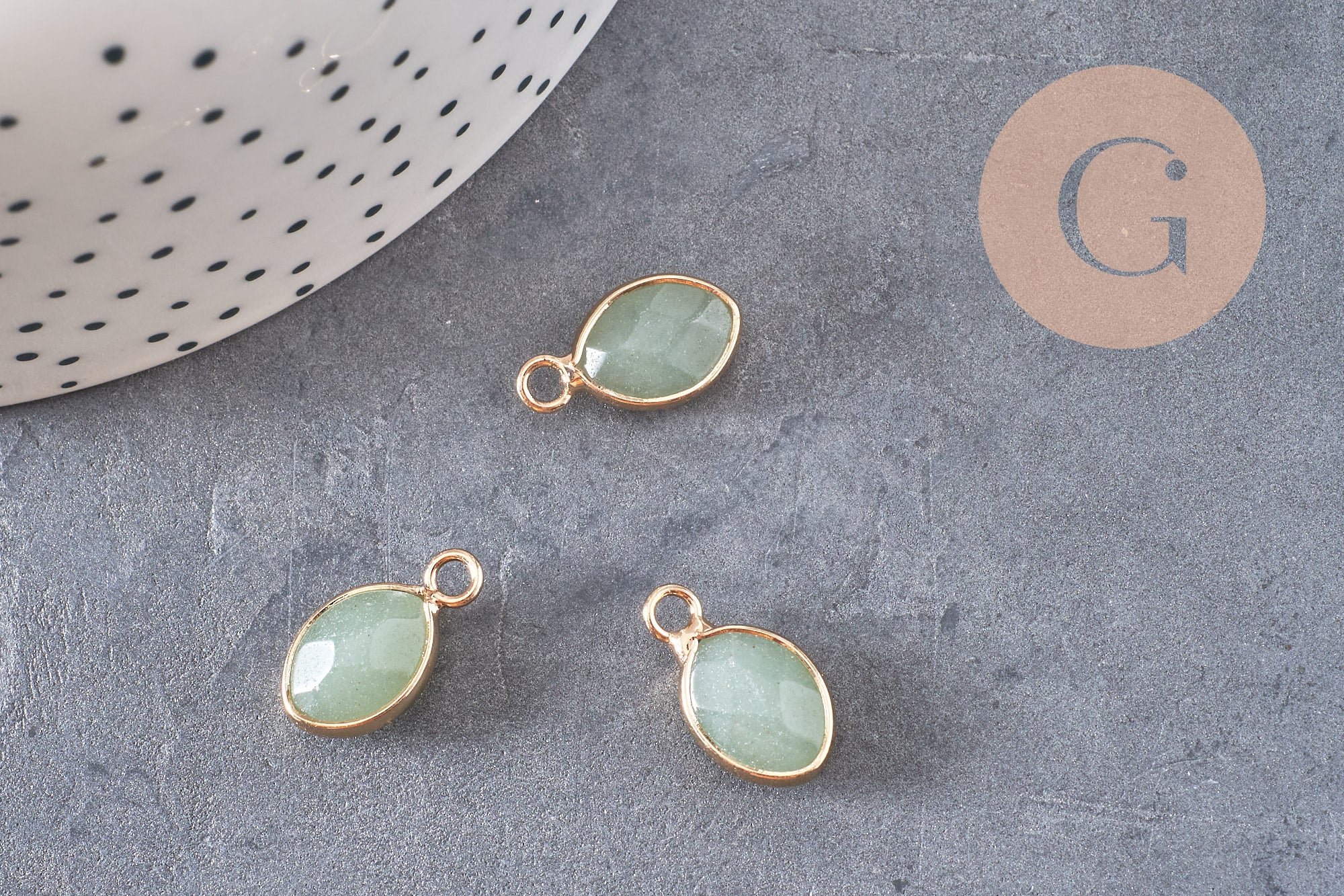 Fall in love with this faceted drop-shaped pendant made of natural green aventurine. Discreet and elegant, it is mounted on a gold-plated brass base that highlights the softness of this semi-precious stone.