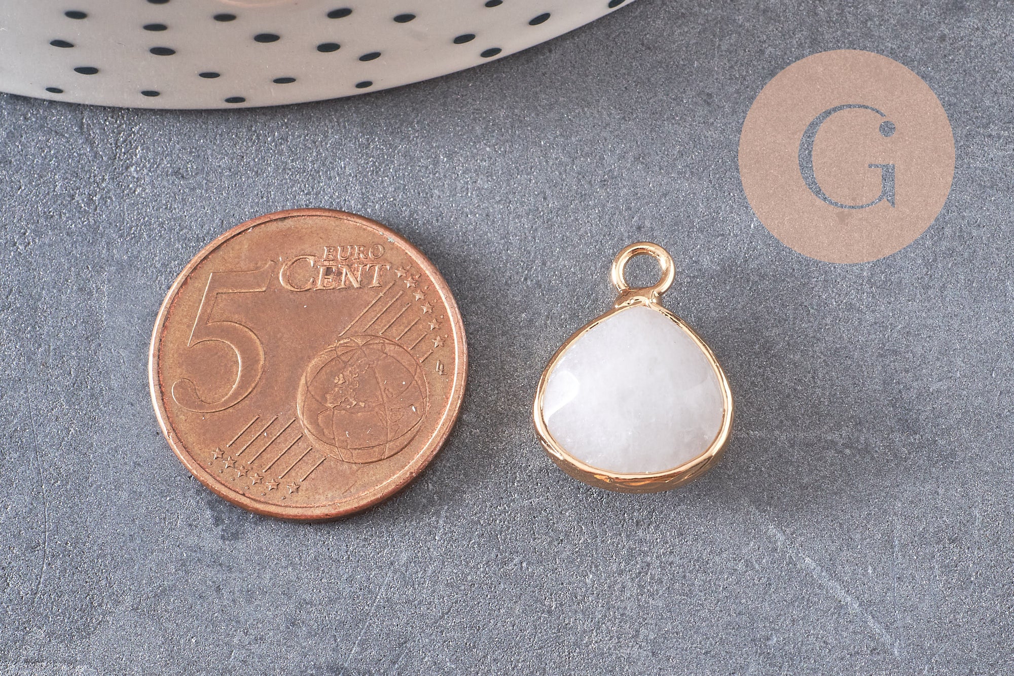 Pendentif goutte jadenaturel teinté blanc laiton doré 18mm, pendentif bijoux pierre naturelle x1 G0789