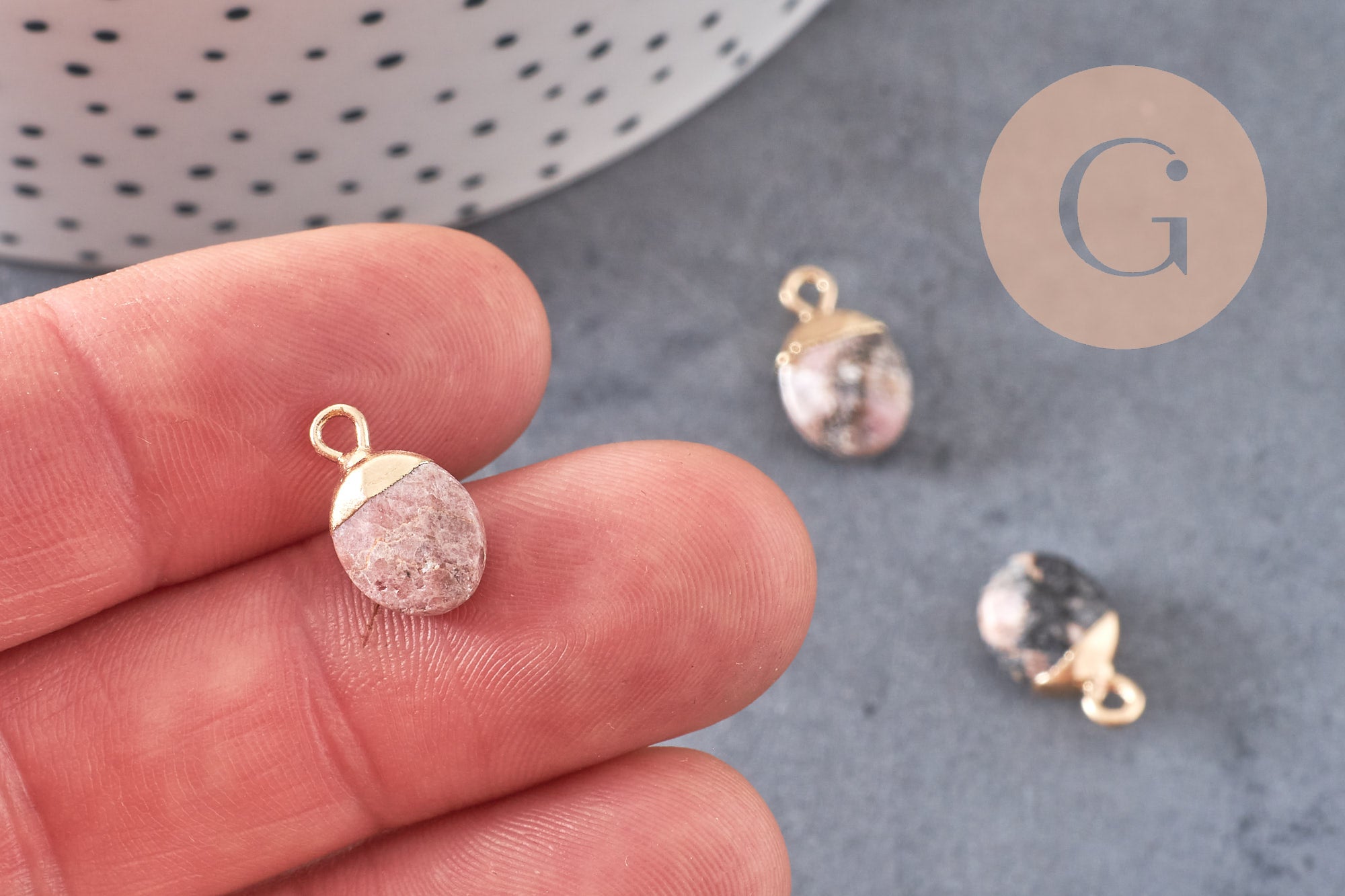Rhodonite drop pendant creative supplies, jewelry pendant, stone pendant, natural rose quartz, rhonodite pendant, 14mm, set of 2