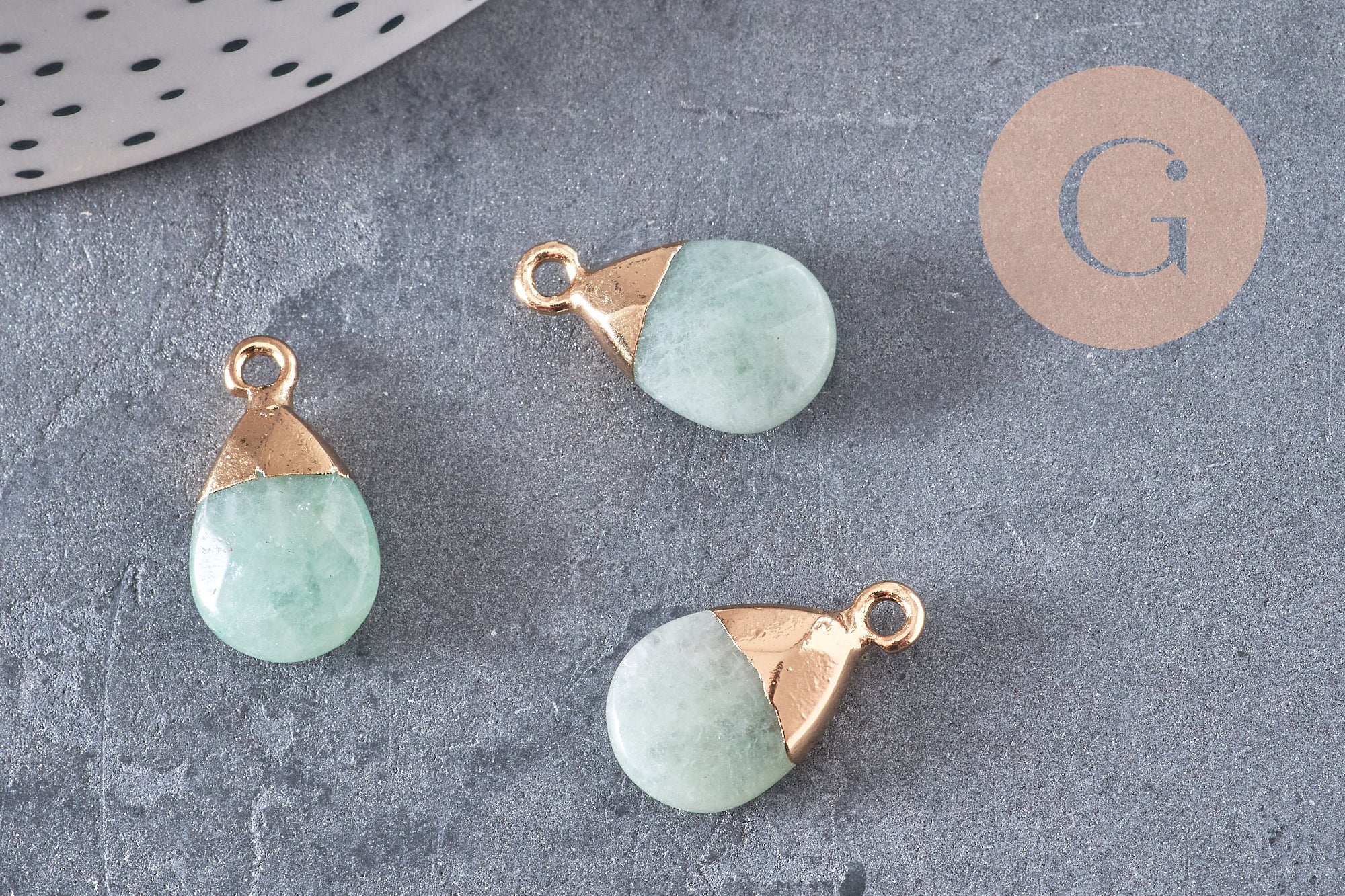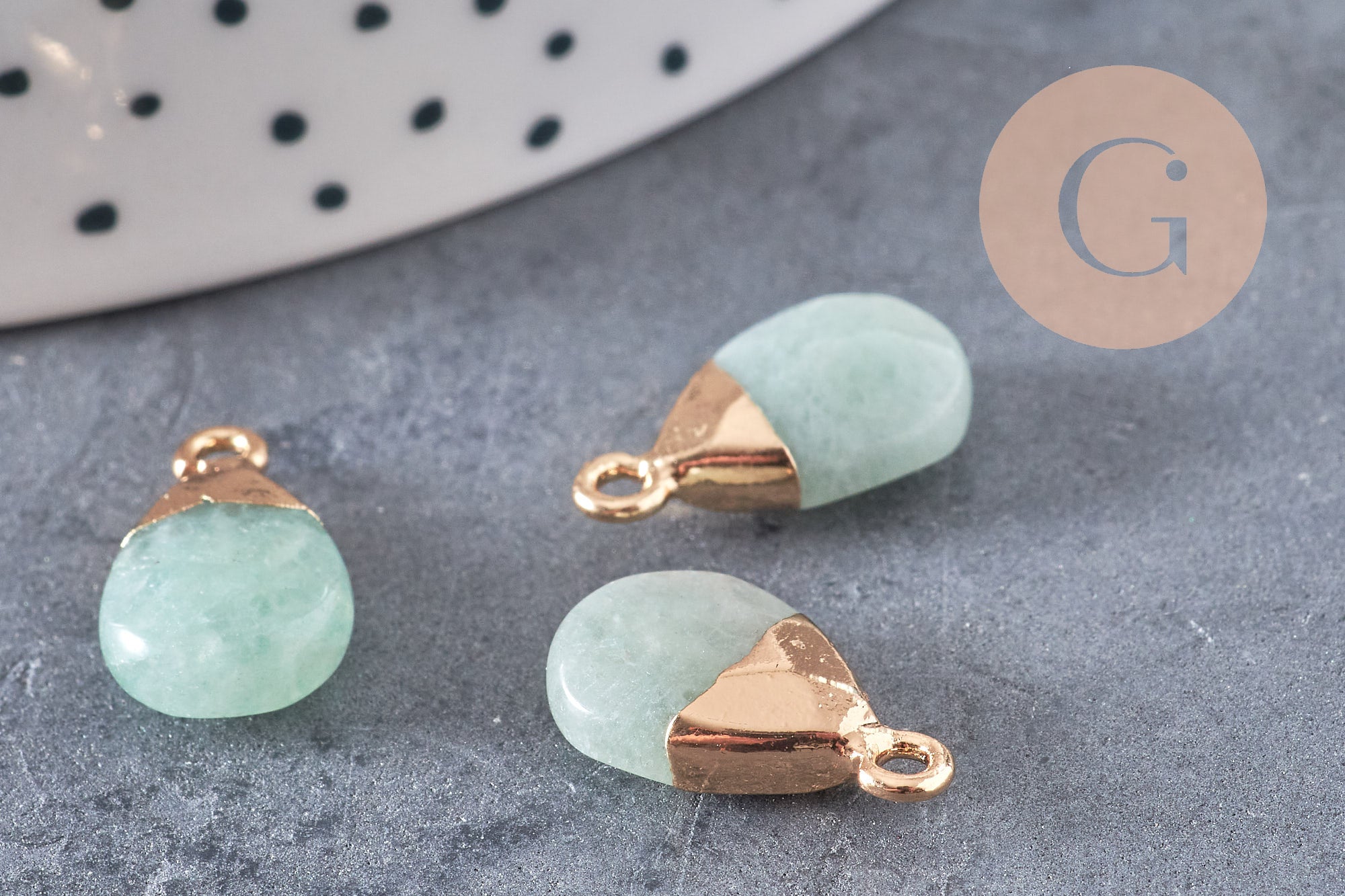 Fall for this small natural aventurine pendant with its golden drop-shaped support.
