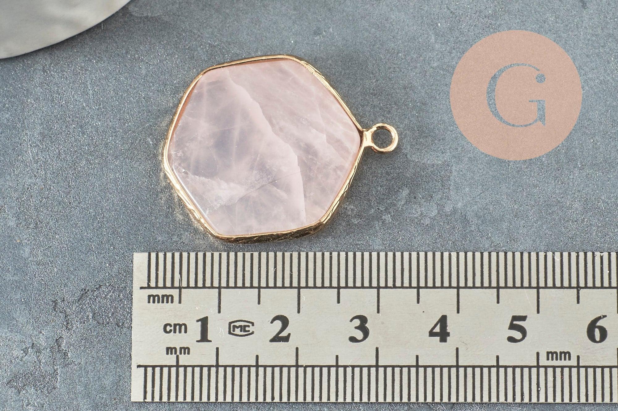 Hexagon rose quartz pendant, stone pendant, necklace pendant, natural stone, quartz pendant, natural rose quartz, 45mm