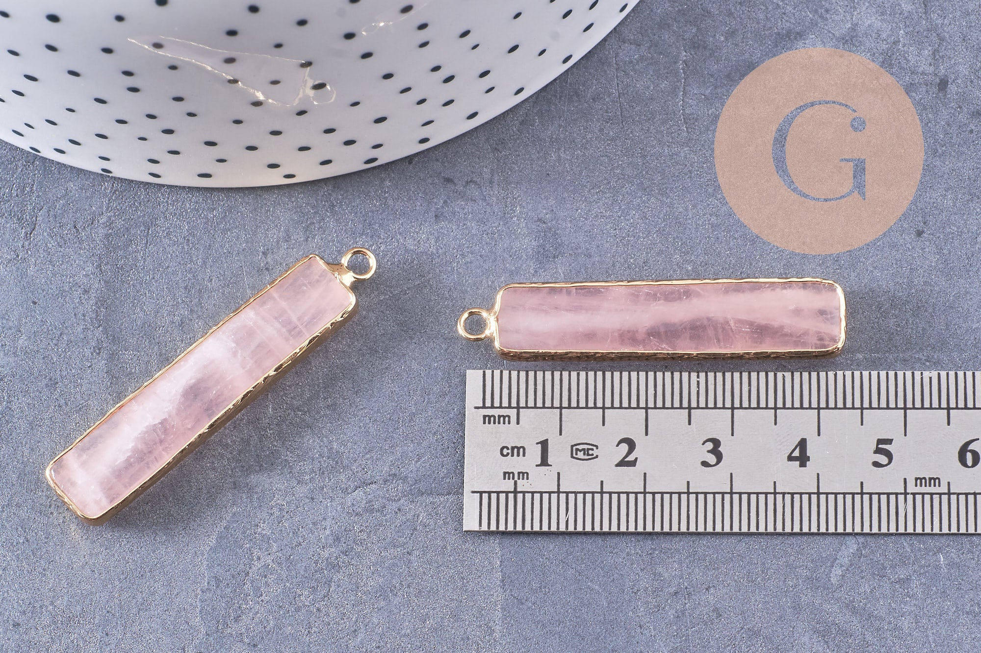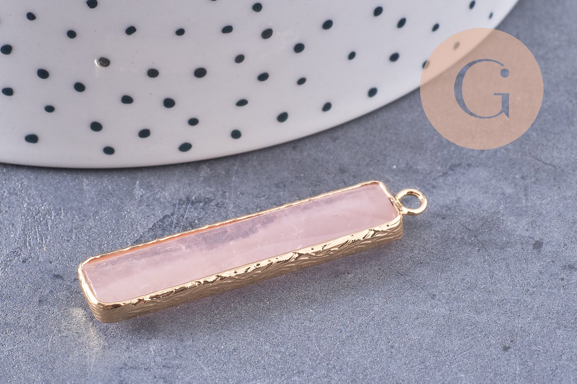 Bring a touch of elegance and softness to your DIY creations with this magnificent pendant in natural rose quartz cut into facets . Its elongated shape and its golden setting make it a refined element to enhance your handmade jewelry.