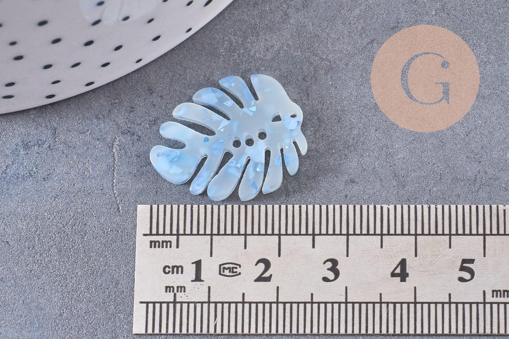 Blue monsterosa leaf acetate pendant, jewelry creation, plastic beads, plastic leaf connector, set of 2, 27mm