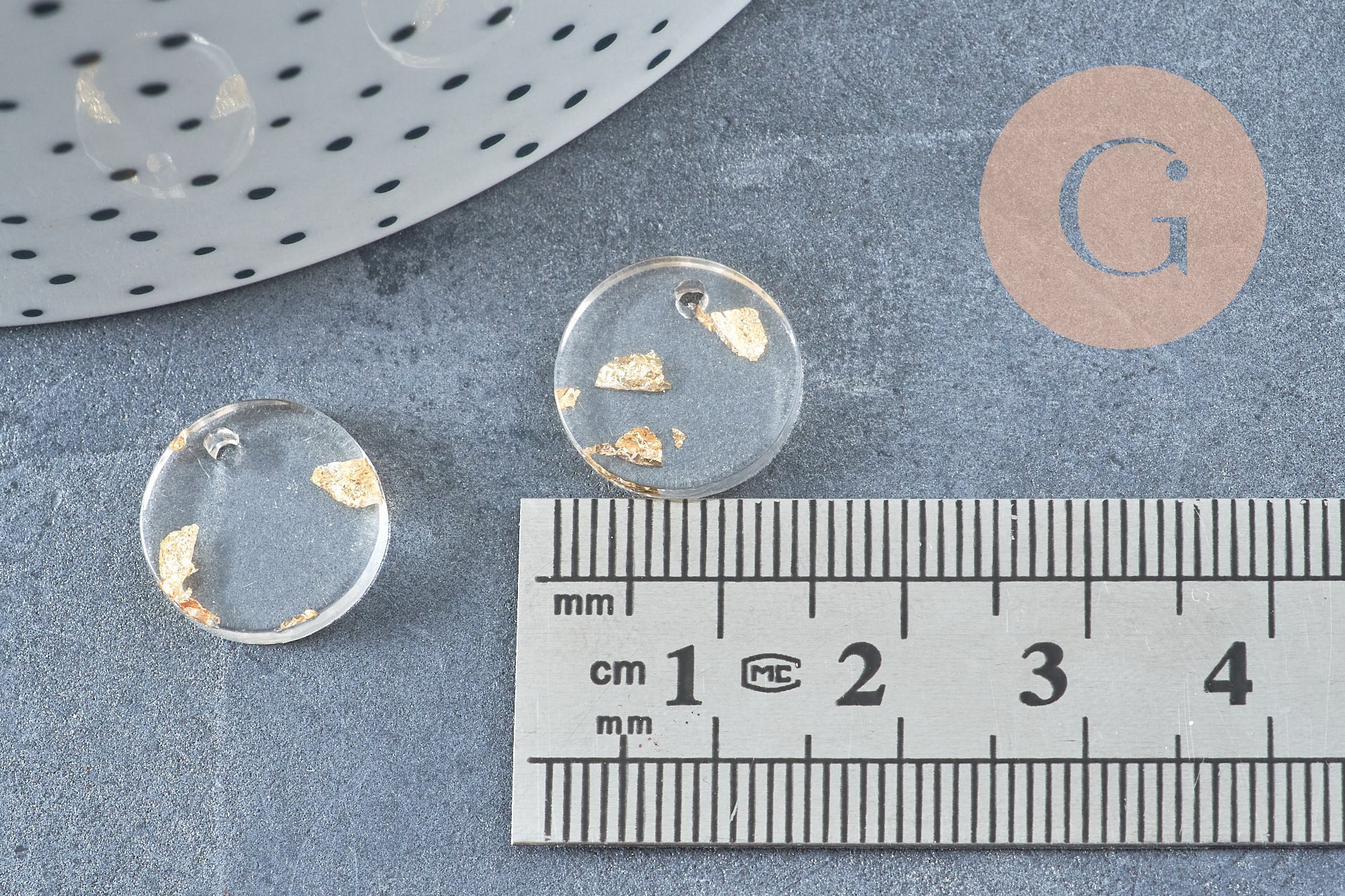 gold leaf transparent acetate disc pendant, round geometric bead for jewelry creation 13.5mm, 5