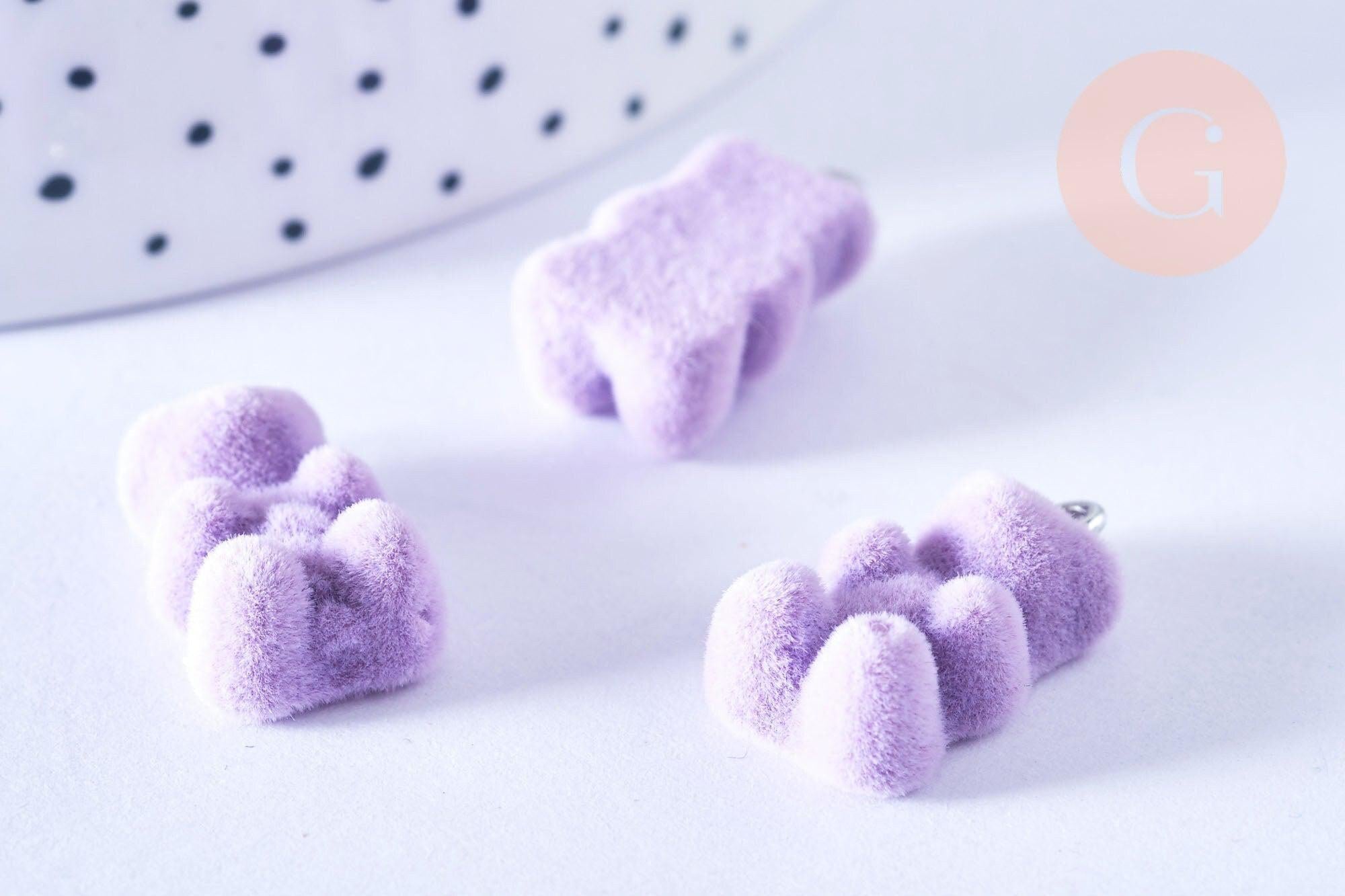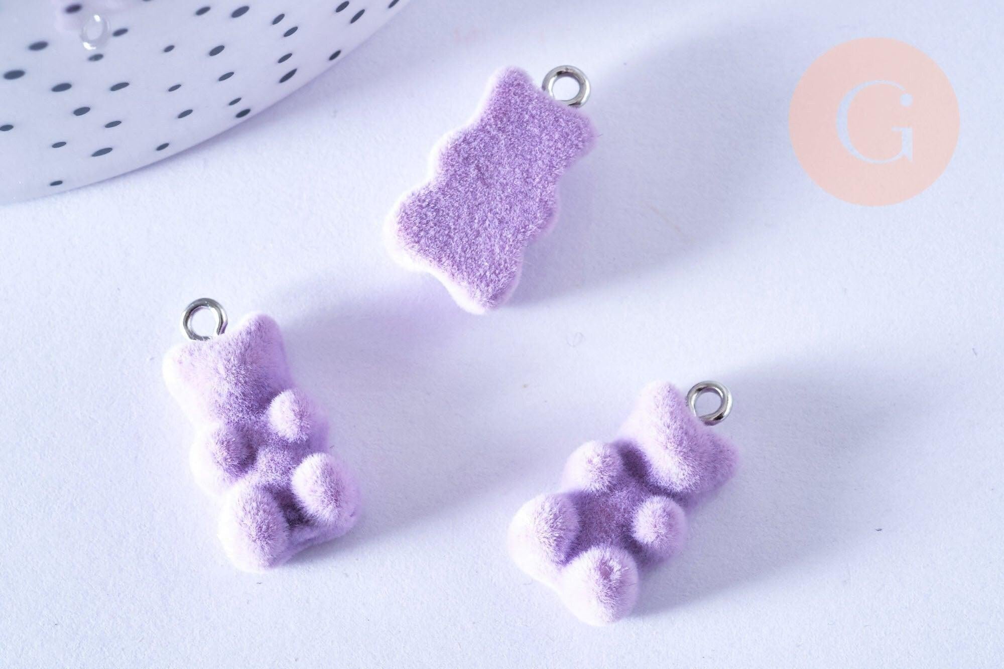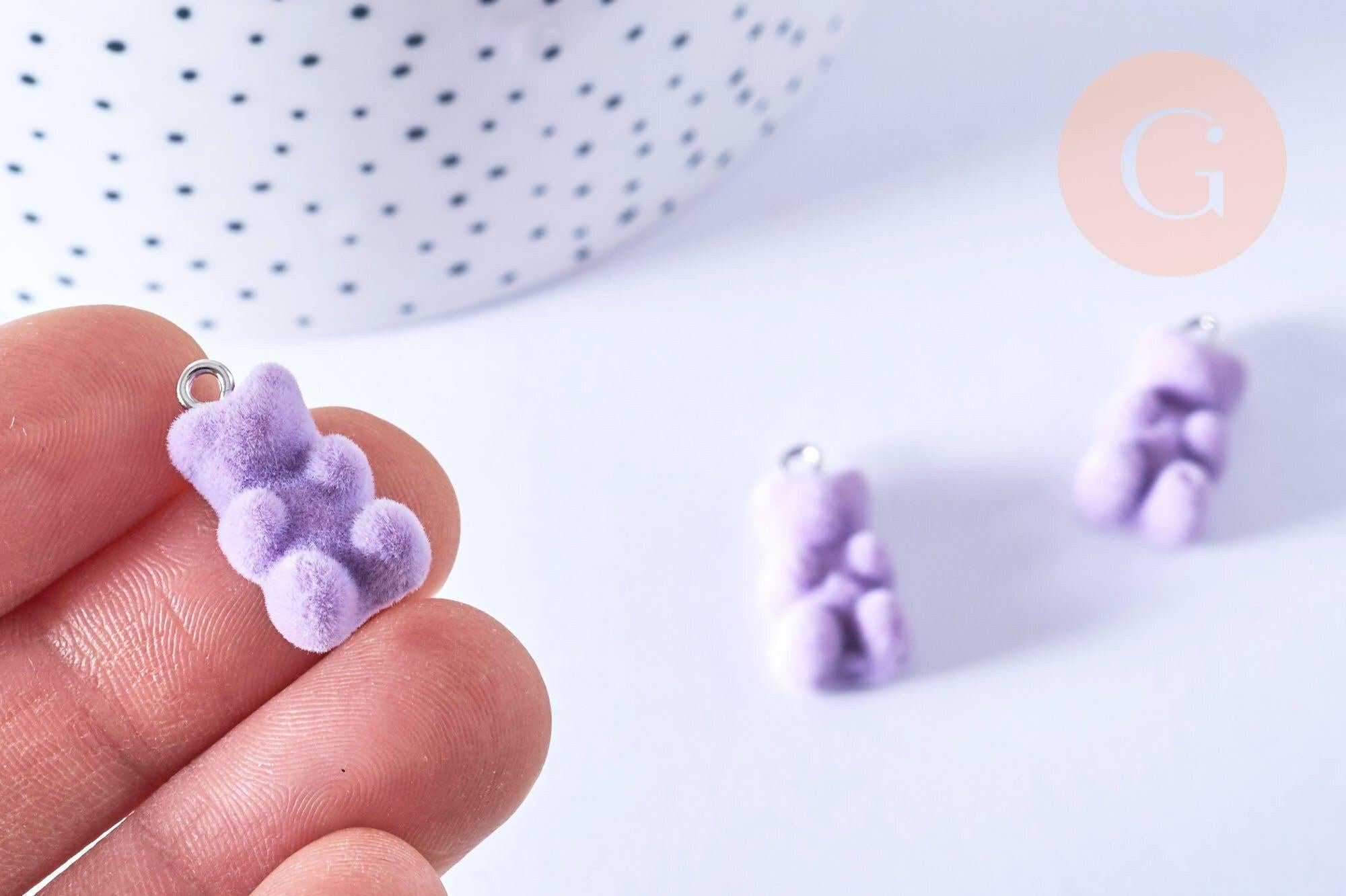 The adorable resin teddy bear pendants , coated with colorful flocking in a pretty shade of light purple, are perfect for bringing your childhood-themed jewelry creations to life.
