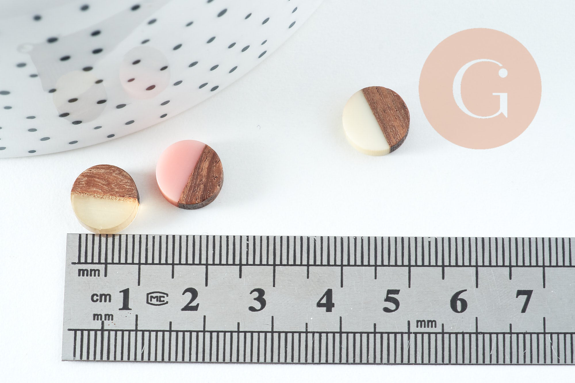 wooden resin disc pearl, natural wood, wooden beads, geometric beads, round pearl, round wooden pearl, wooden jewelry creation, 10mm, set of 5