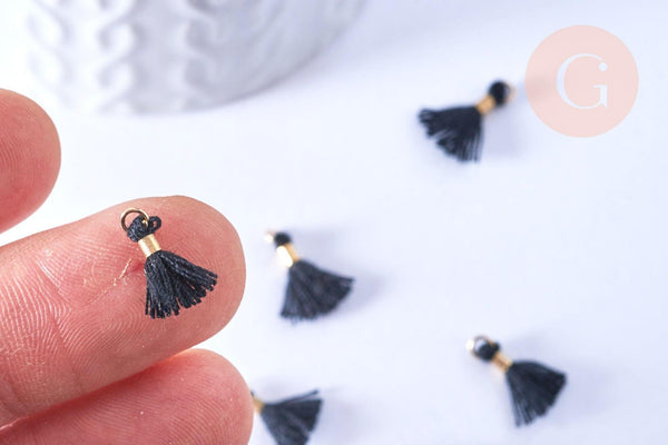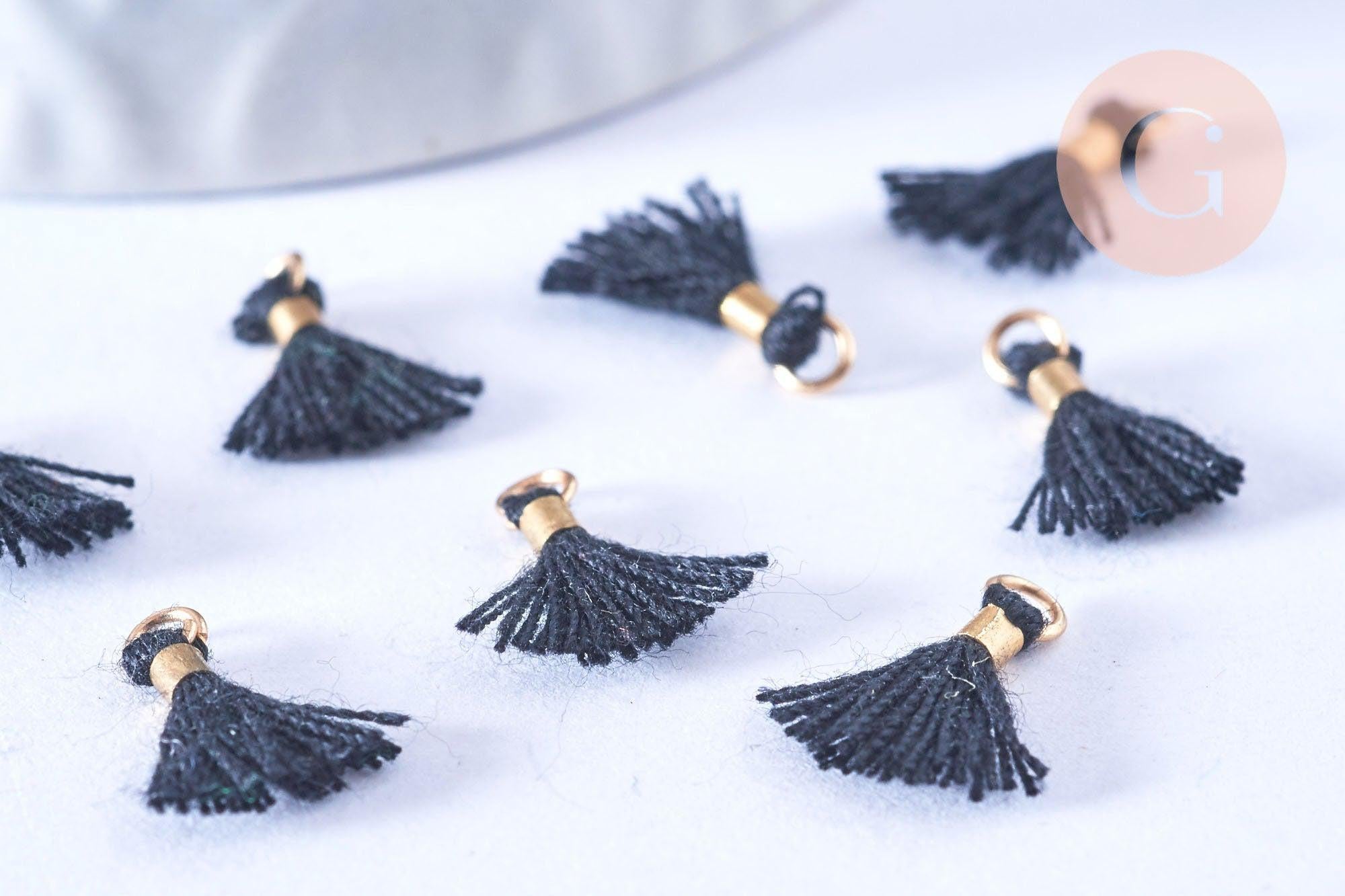 Fall for this set of 10 black pom poms in imitation cotton polyester and gold support