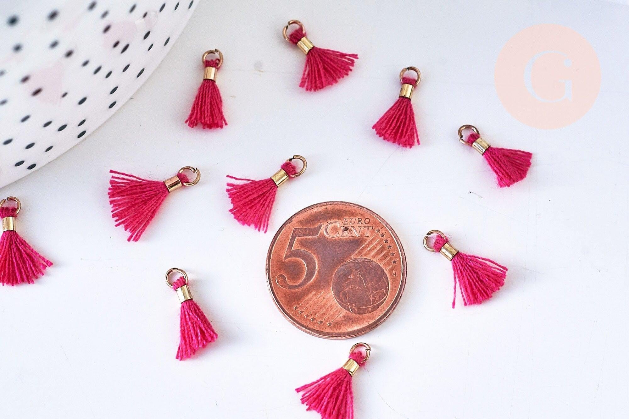 Fall for this set of 10 dark pink pom poms in imitation cotton polyester and gold support