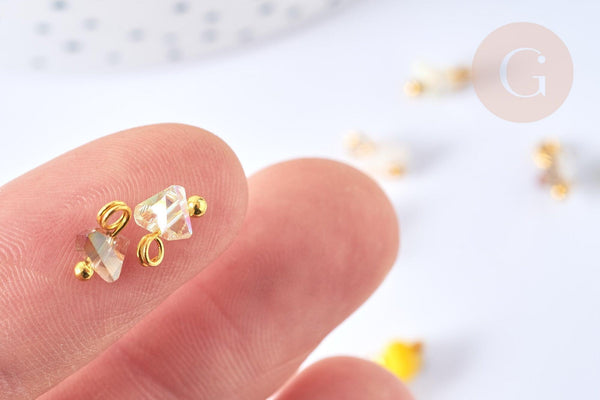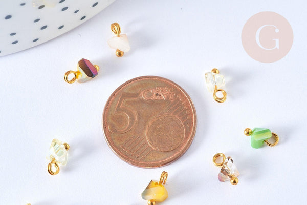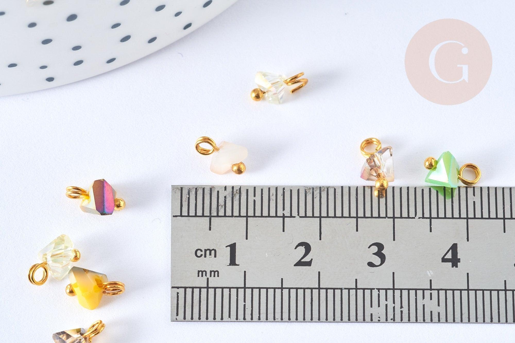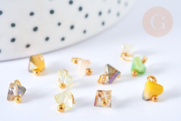 For colorful jewelry, adopt these faceted glass triangle charms in golden brass. It will allow you to create many shiny and luminous costume jewelry.