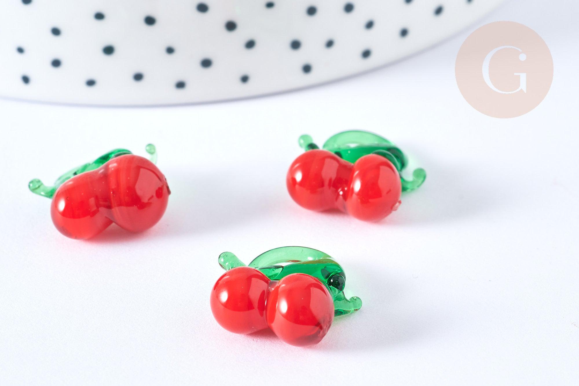 Fall for this red and green glass cherry pendant, to hang from your hoop earrings, necklaces and other accessories or jewelry.