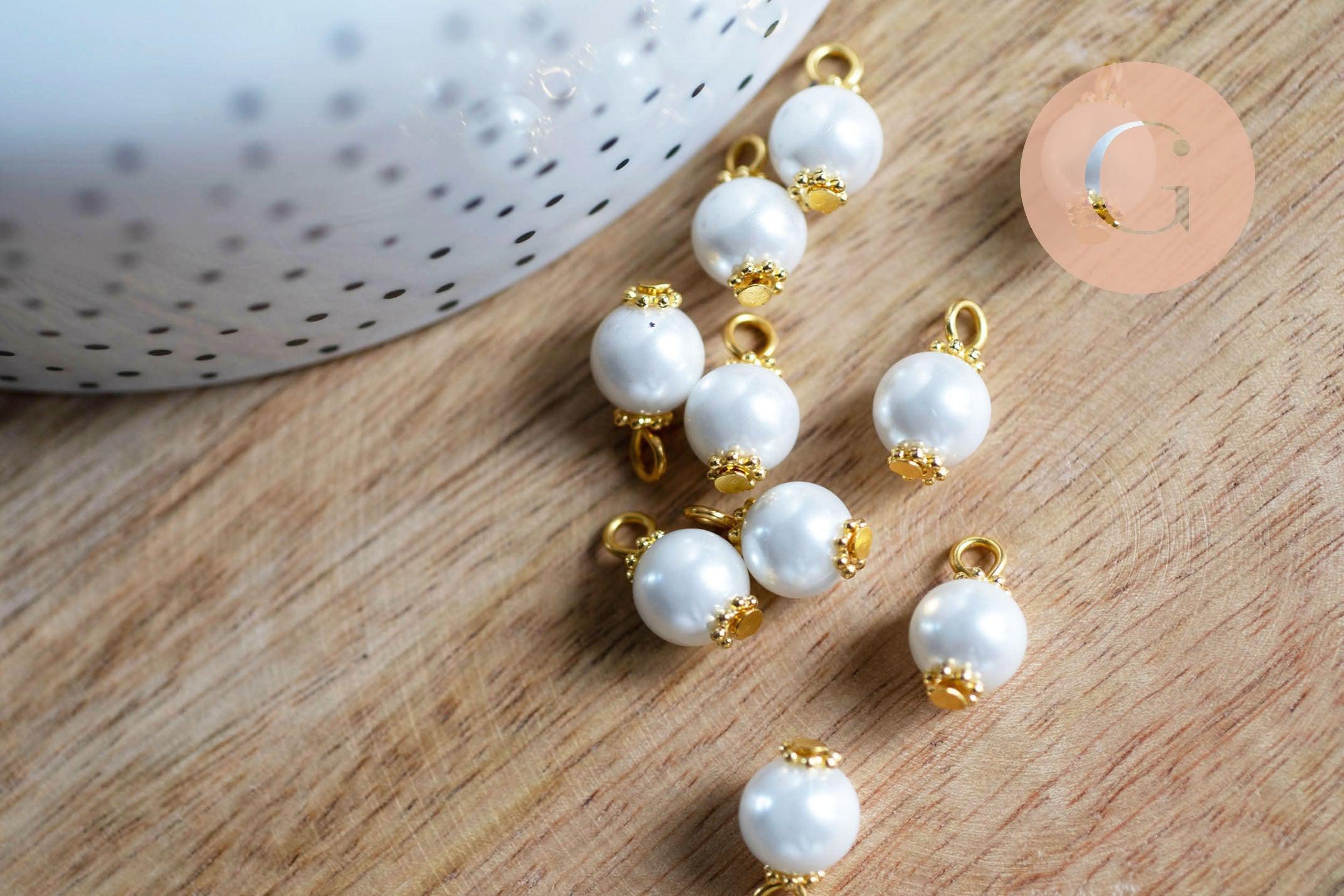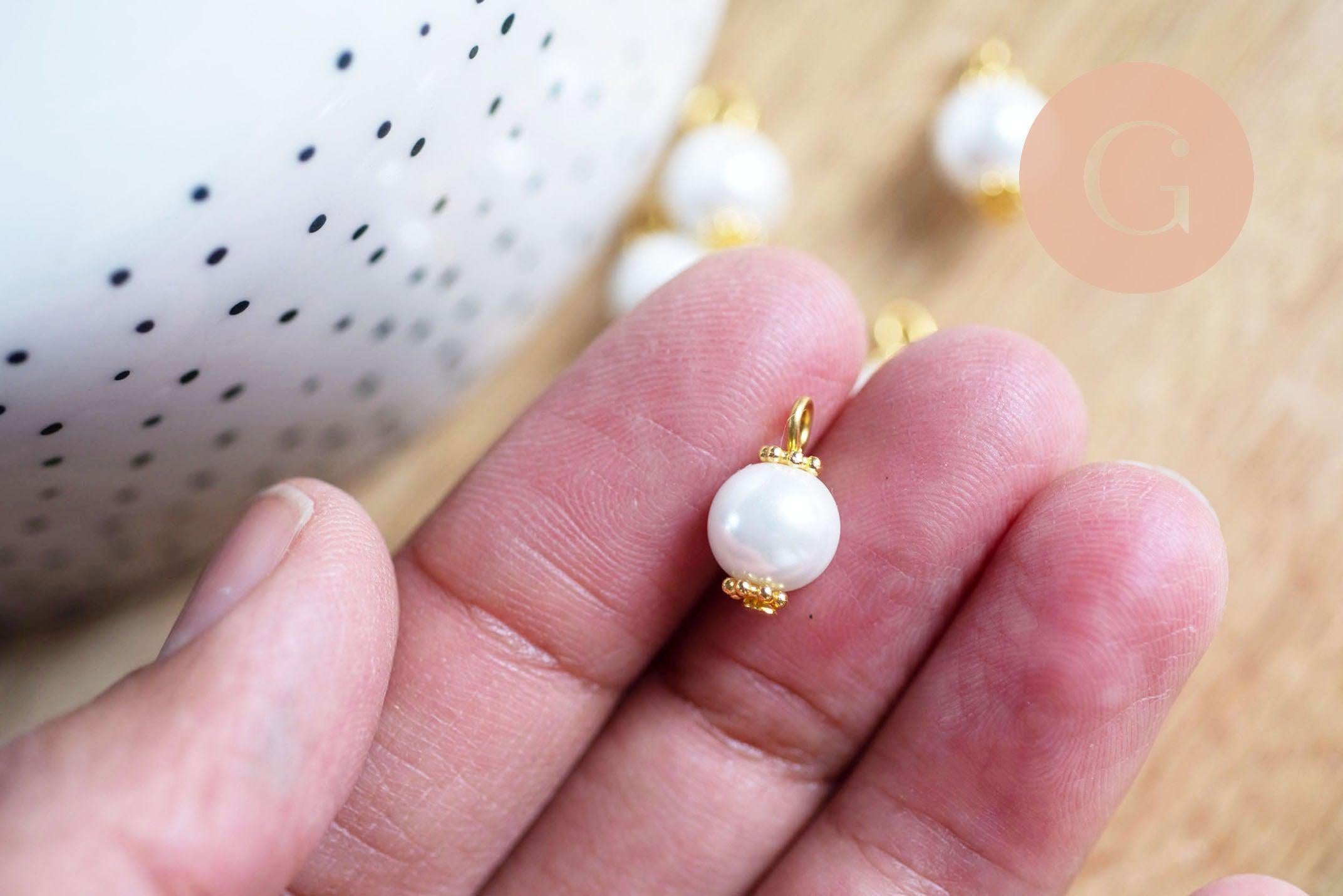 Discover this 14mm round pearl in pearly glass like a natural pearl, mounted on a stem with a cap to make a chic pendant .
