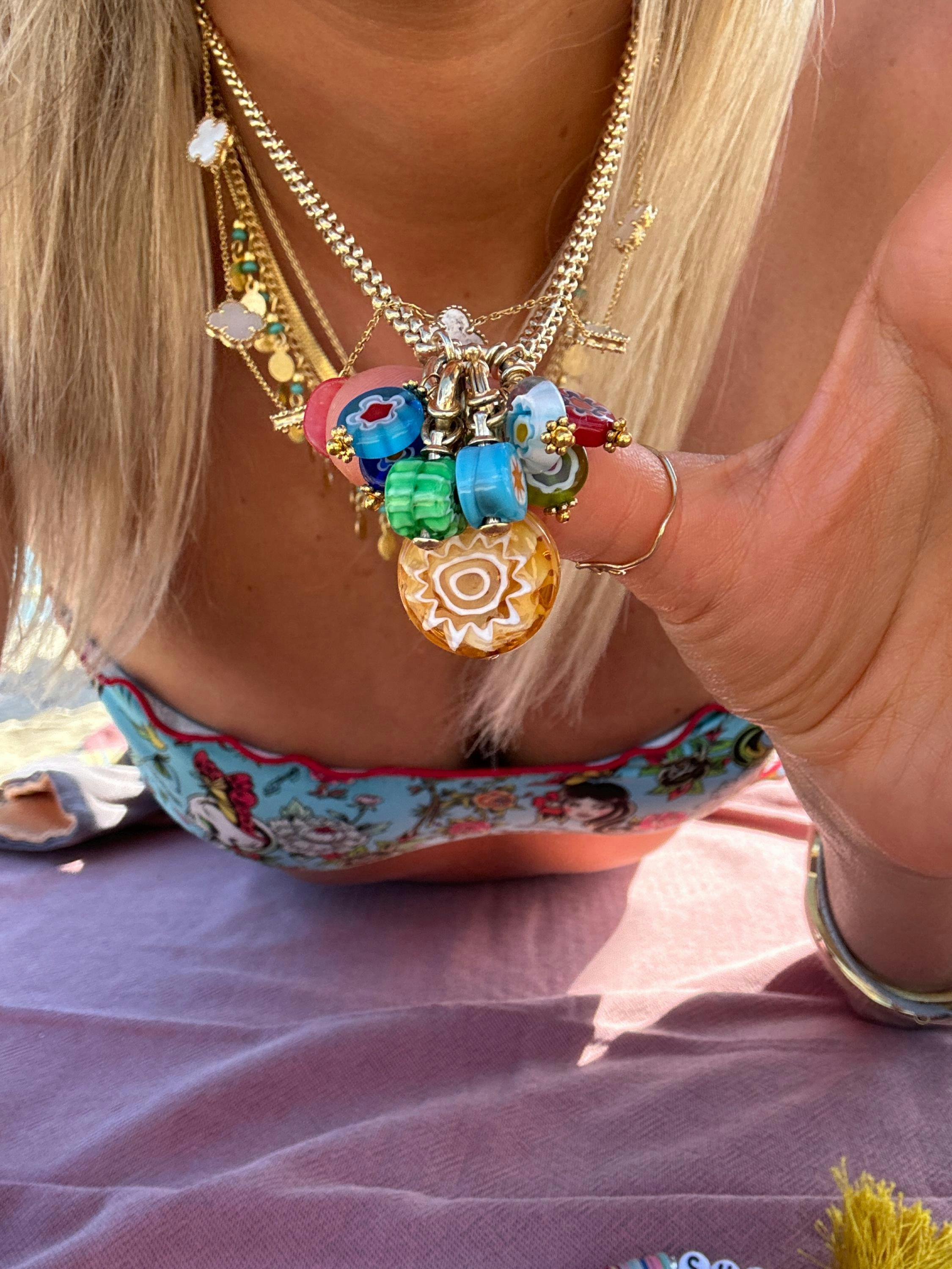 2. Add a carabiner to make it a charm . Attach it to your zipper of your makeup bag or jacket. Personalize your objects with this millefiori pendant .