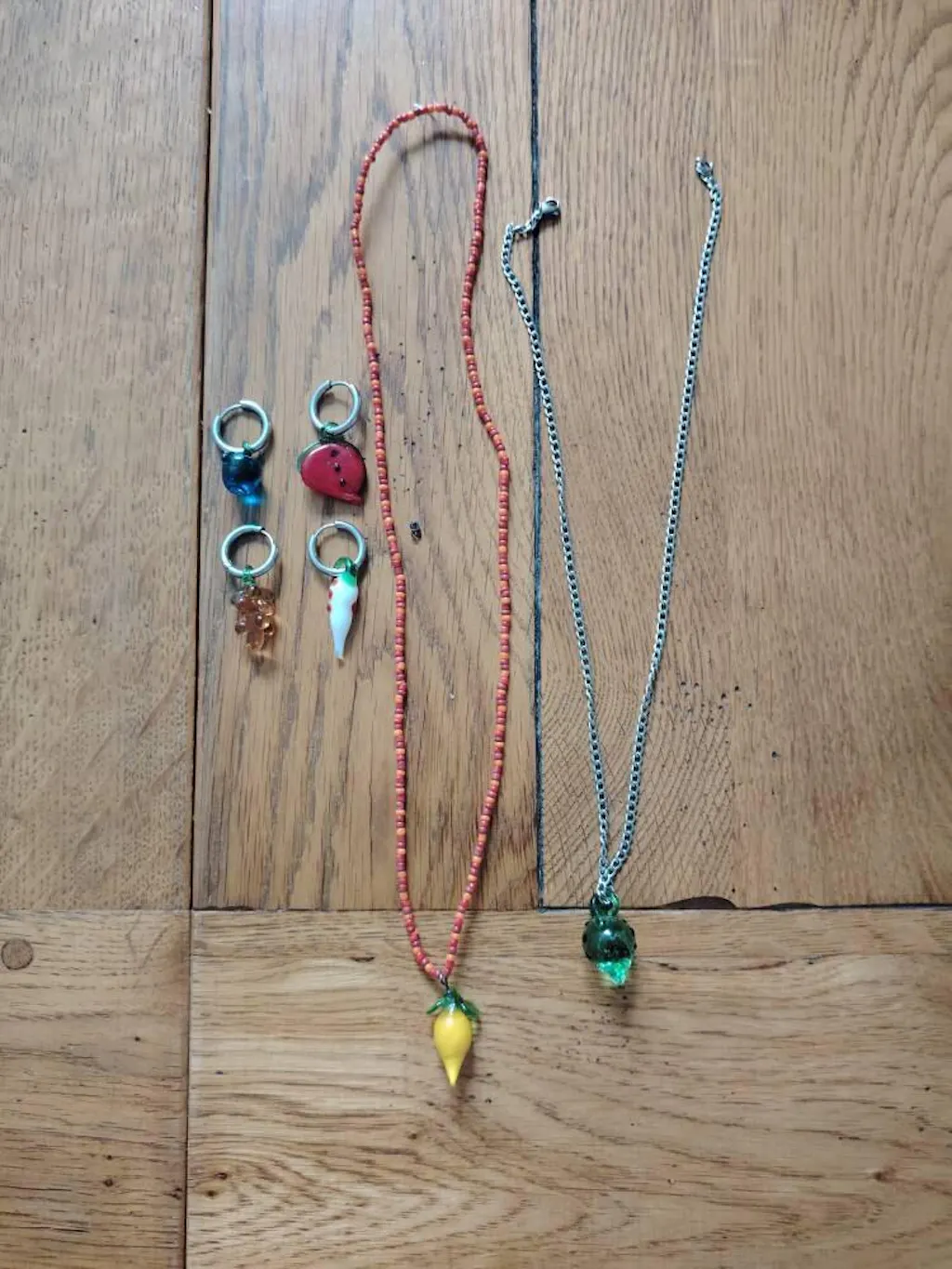 A set of handcrafted glass fruit pendants to hang from your hoop earrings, necklaces and other accessories or jewelry.