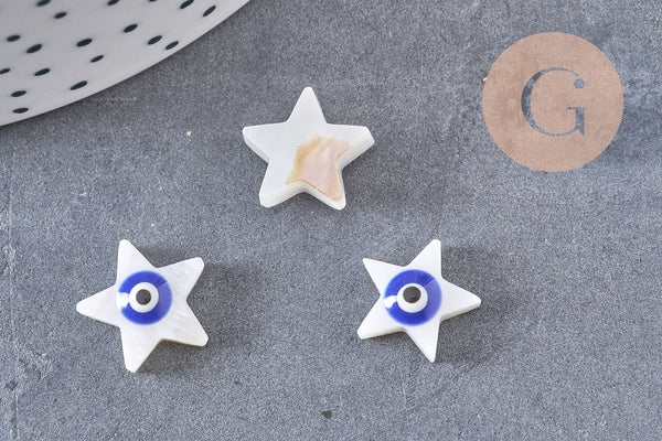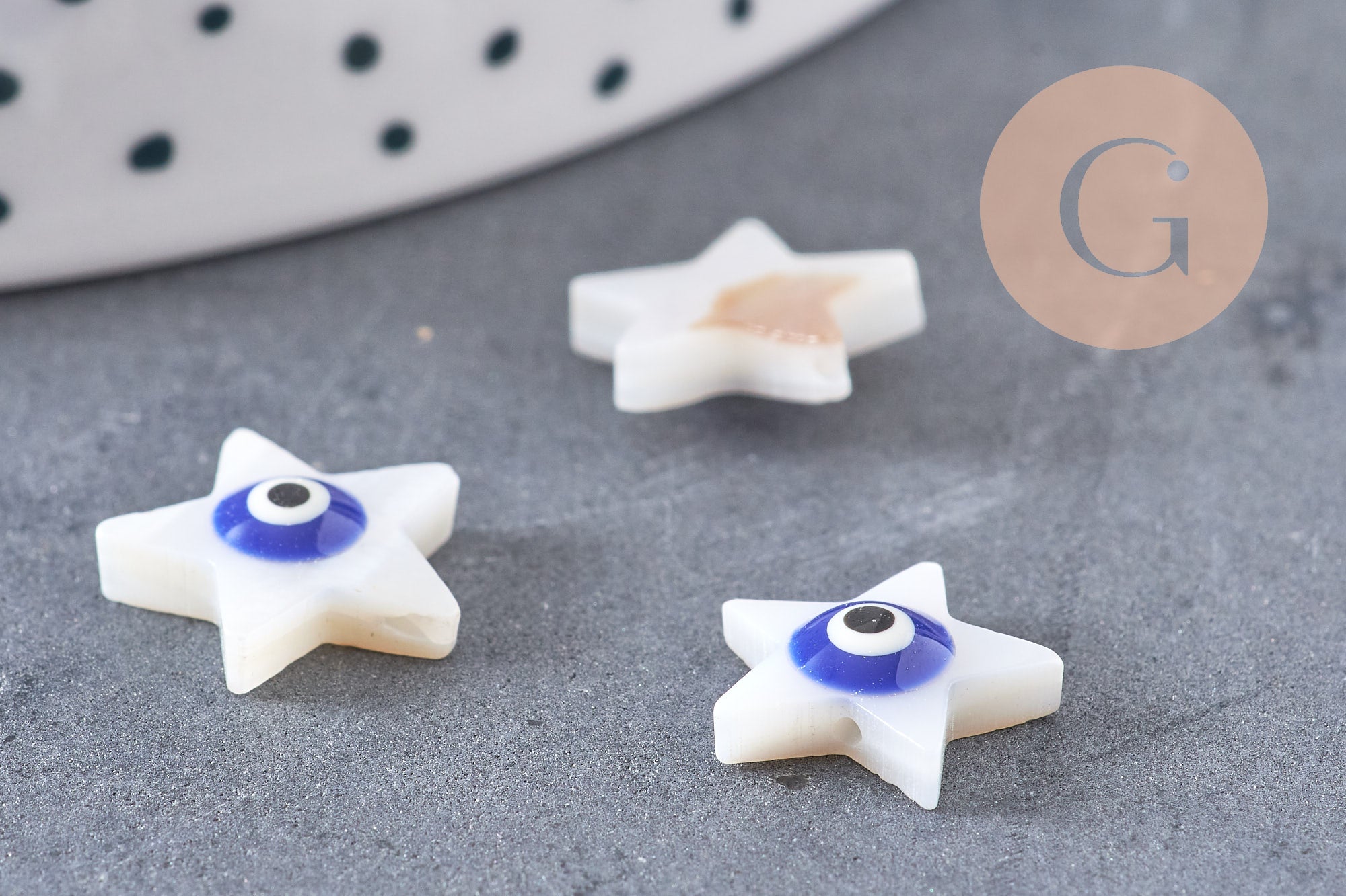 Fall for this set of 10 white mother-of-pearl star beads representing the eye of luck. To customize your jewelry, and other textile or soft leather accessories, it