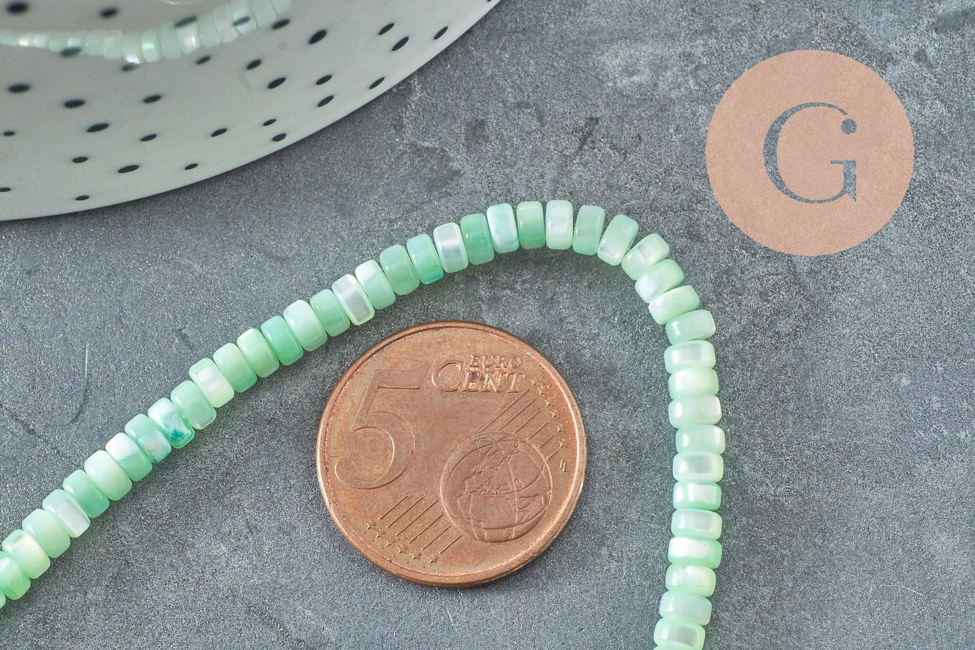 natural heishi mother-of-pearl pearl pastel green, colored shell tube, shell pearl, jewelry creation, 2x4mm, 20 cm thread