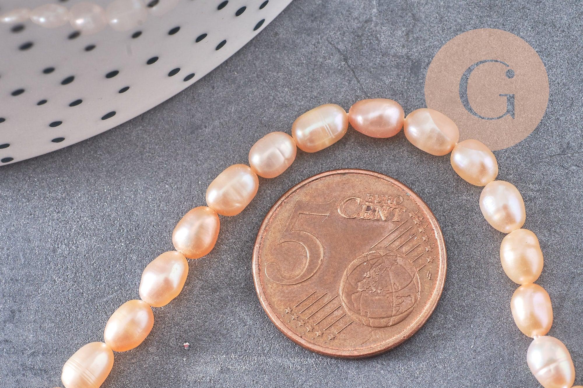 natural peach pearl, oval pearl, pierced pearl, cultured pearl, jewelry creation, freshwater pearl, 4-5mm, wire