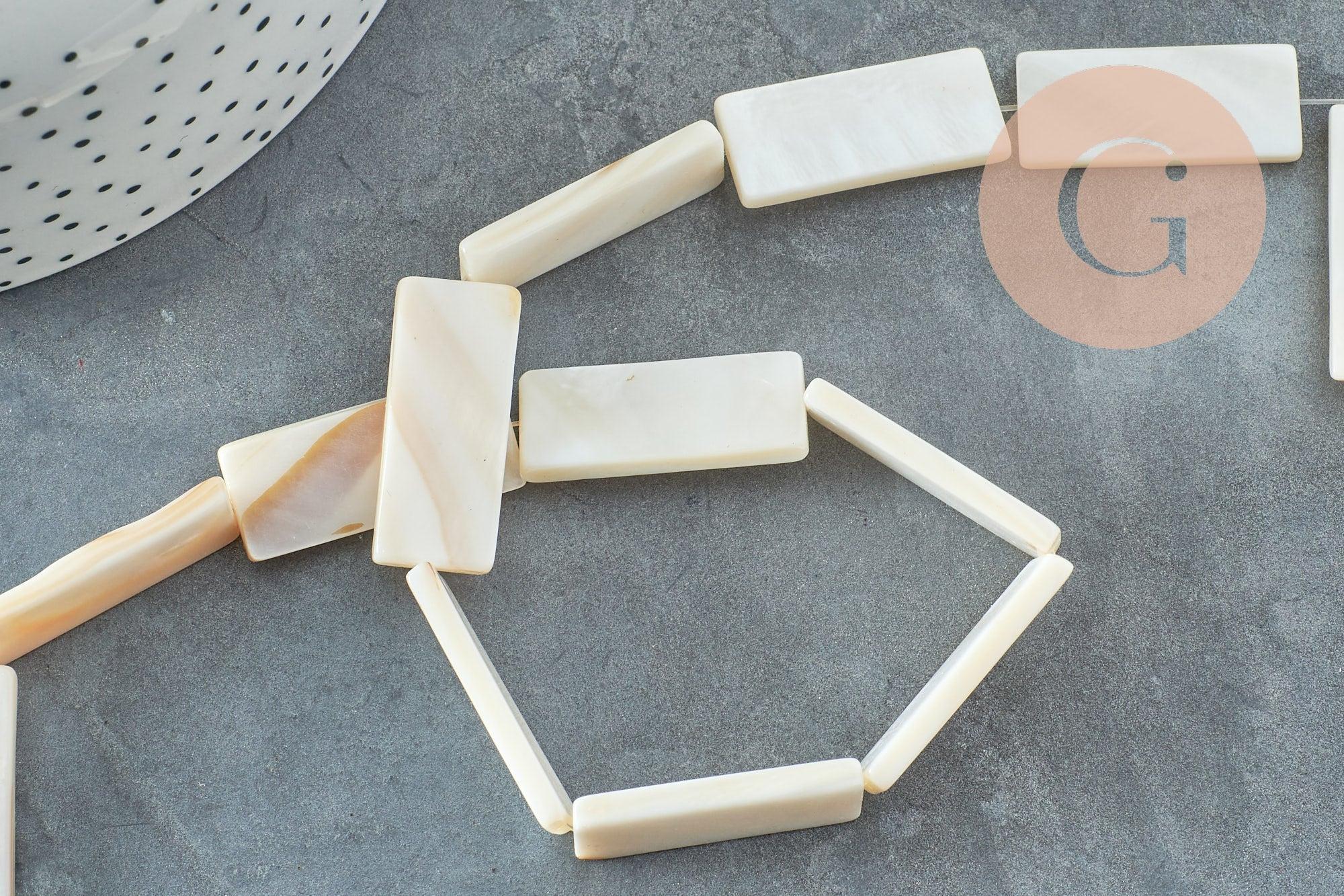 Bring a touch of timeless elegance to your creations with this thread of rectangular beads in natural white mother-of-pearl .