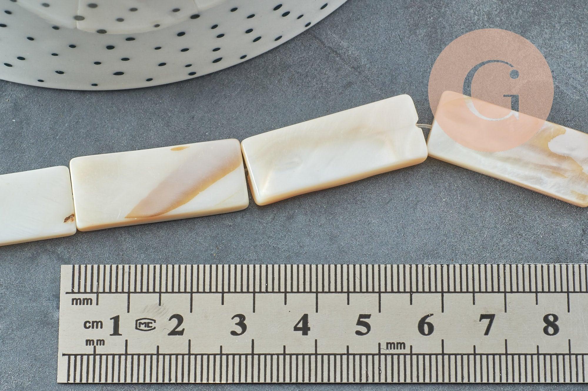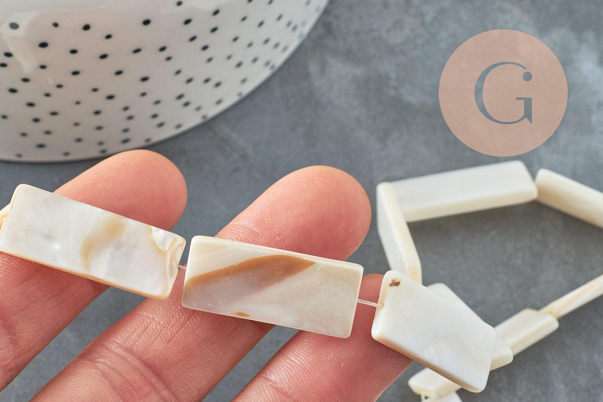Natural white mother-of-pearl rectangle pearl 28mm, x1 strand of 25cm (G0652)