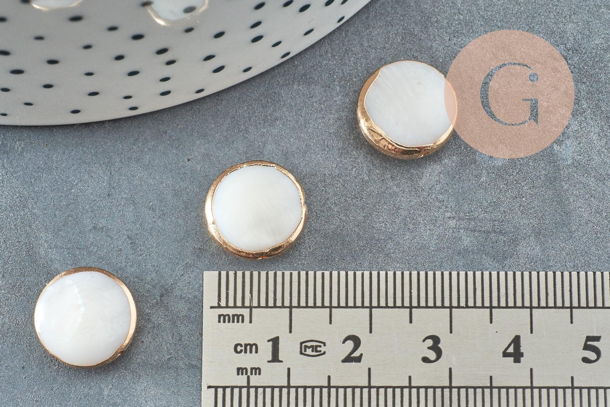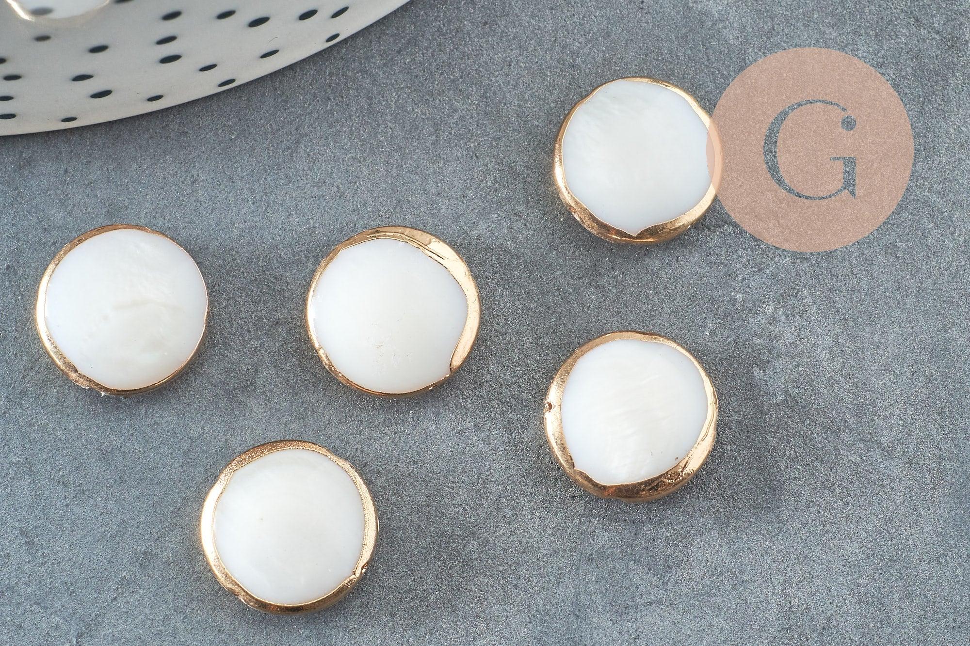 Perle ronde nacre blanche naturelle fer doré 13mm,nacre blanche,perle ronde nacre,coquillage blanc, x5 G0425