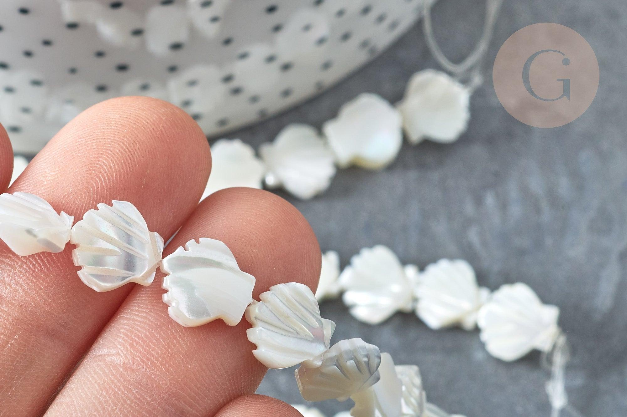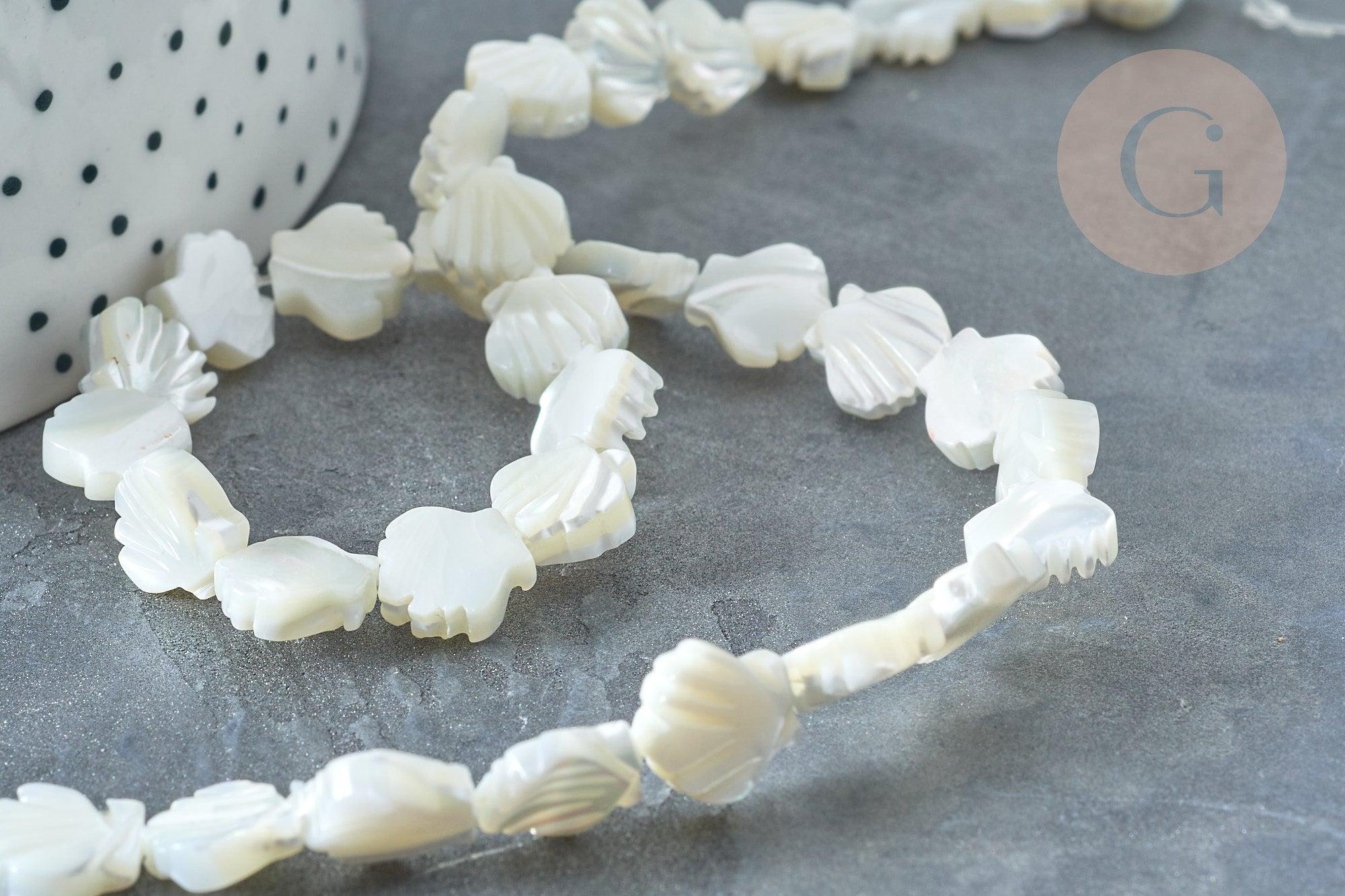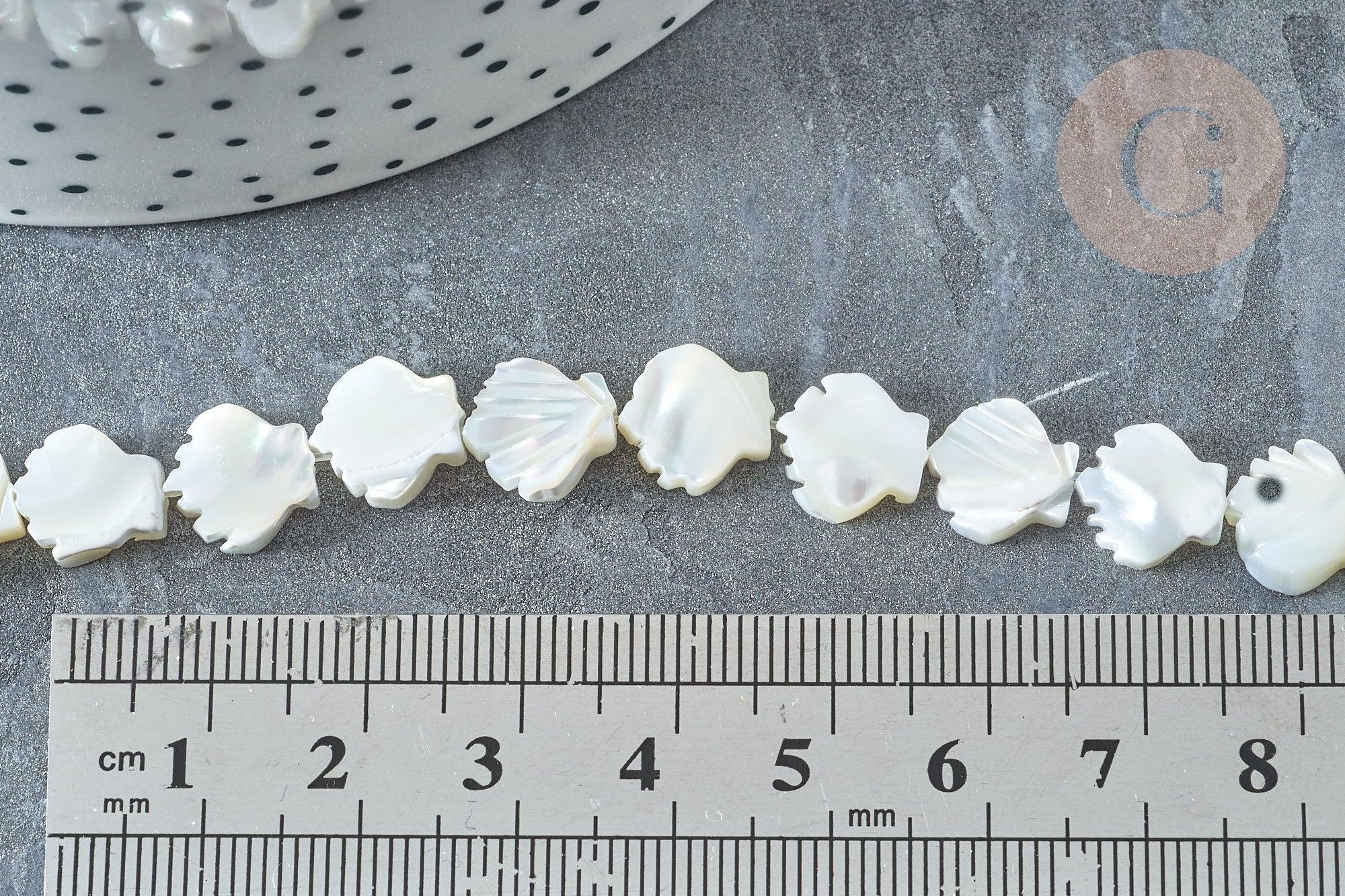 Perle Saint-Jacques nacre blanche naturelle 9,5~10mm, coquillage naturel, le fil de 42cm, x1 G7839
