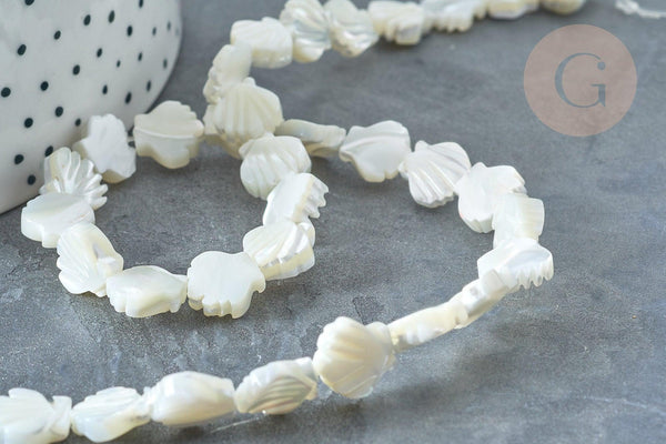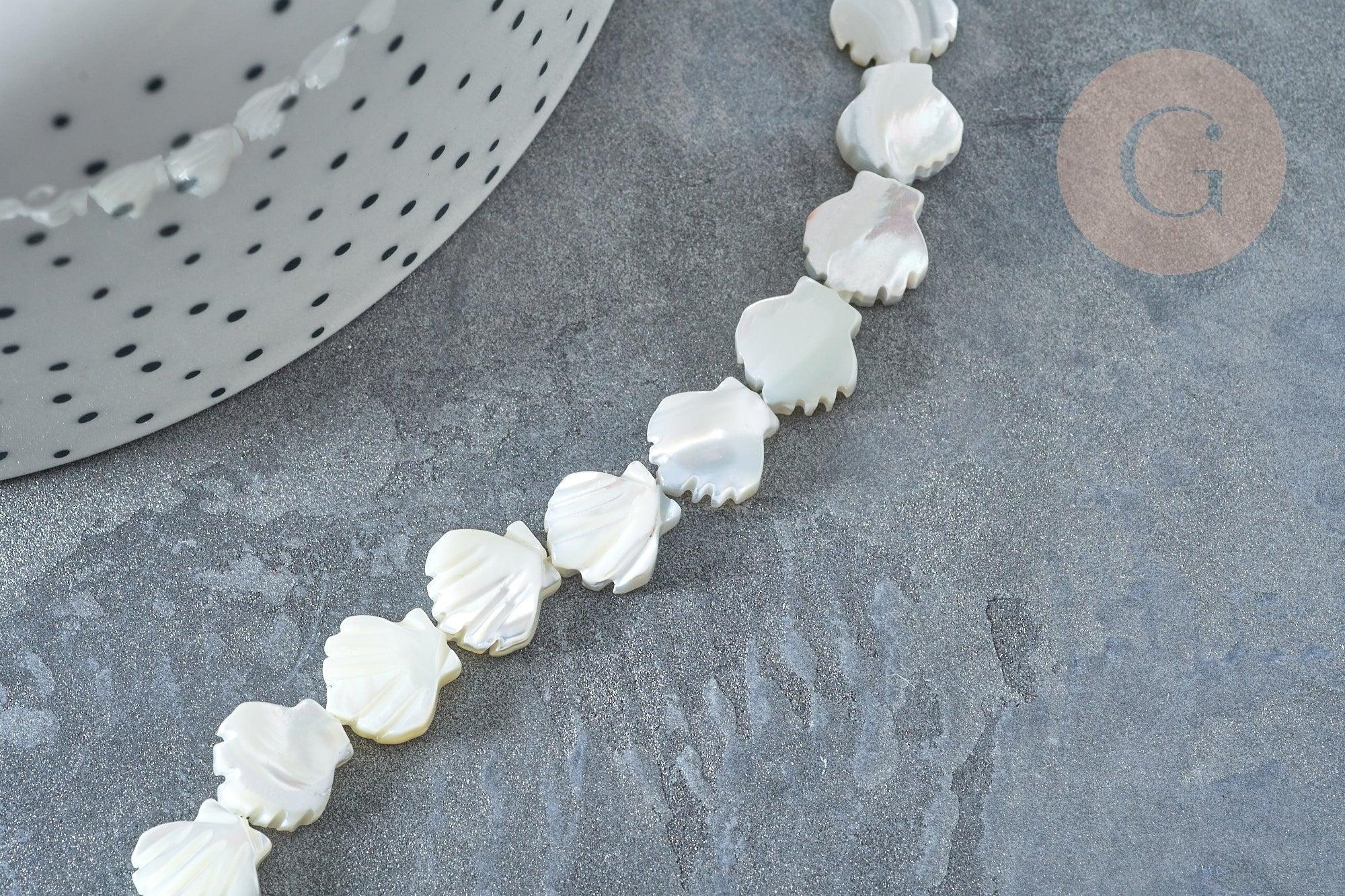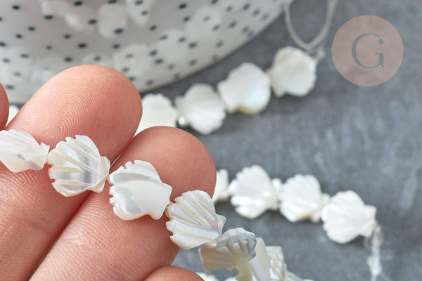 Natural white mother-of-pearl Saint-Jacques pearl 9.5~10mm, natural shell, 42cm thread, x1 G7839