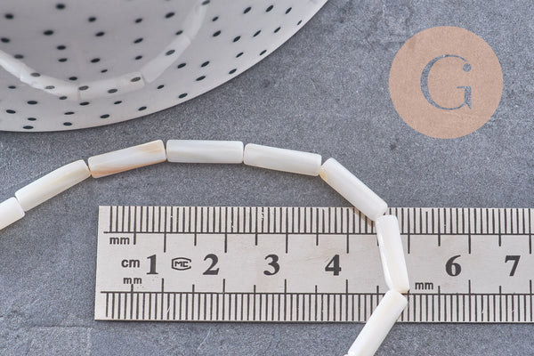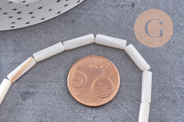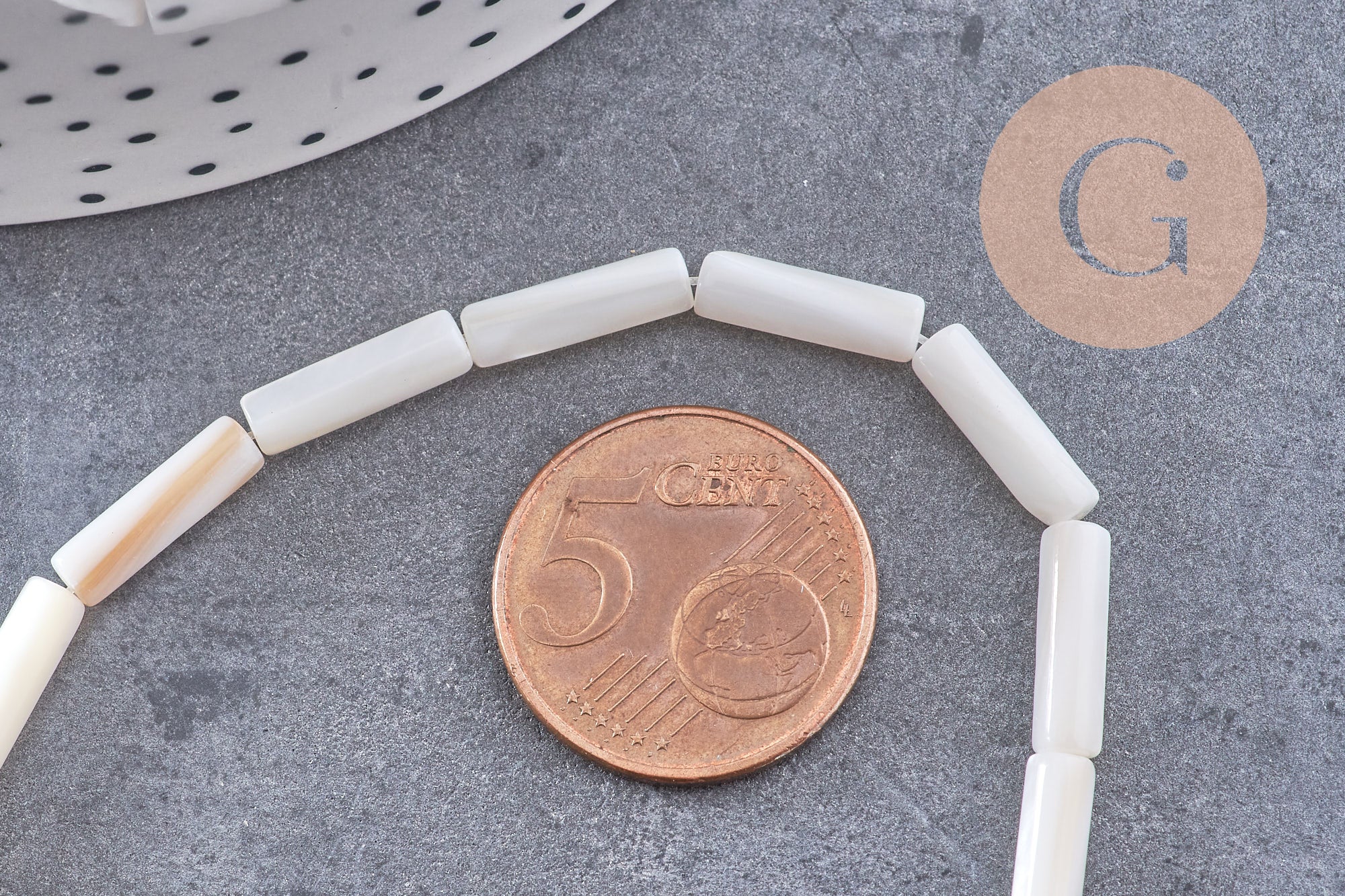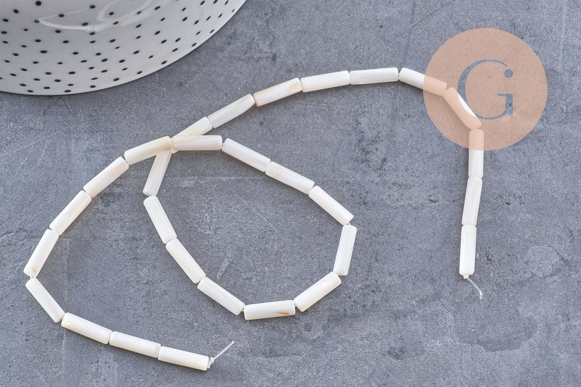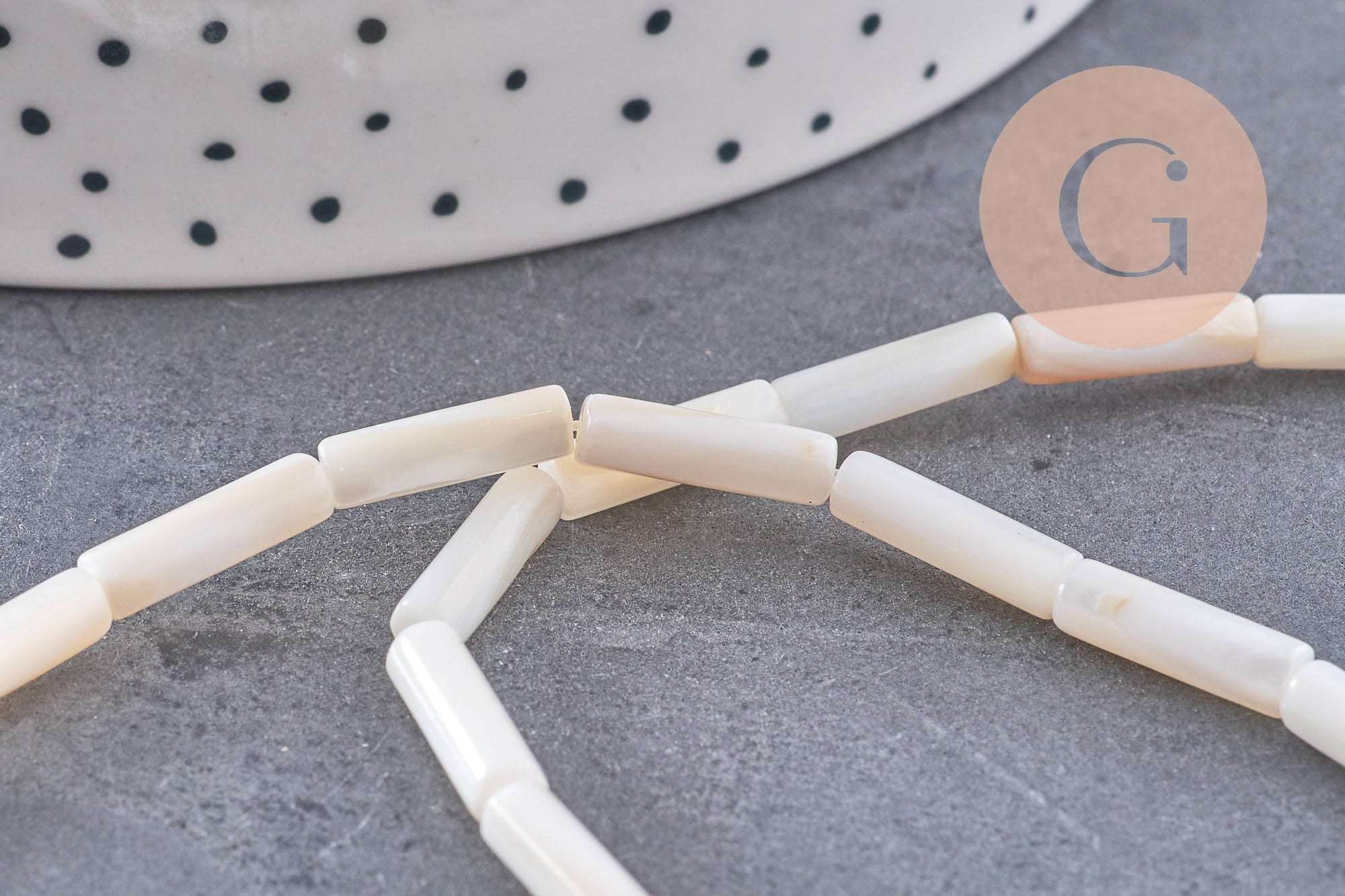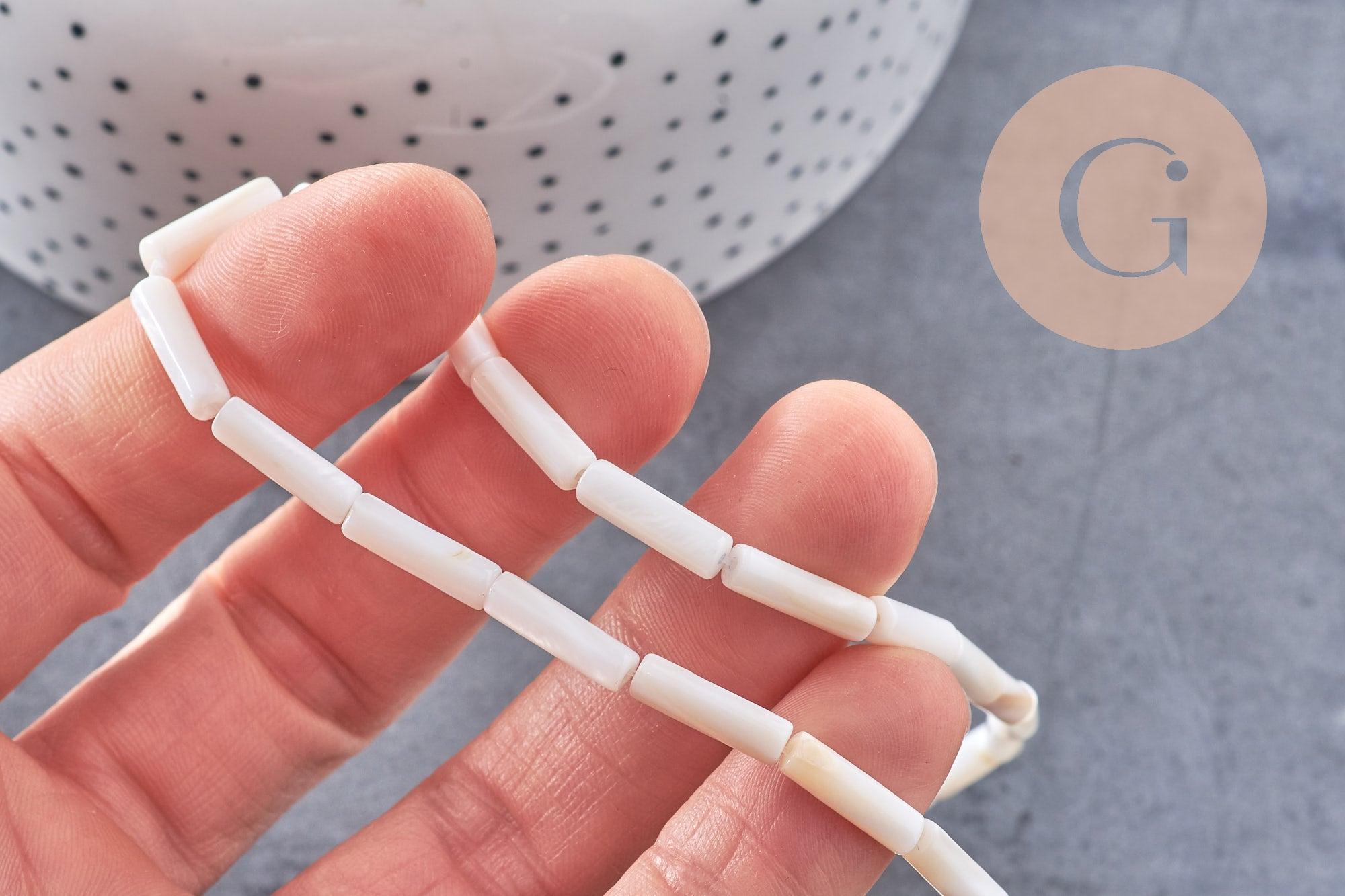 Fall in love with this pretty strand of natural white mother-of-pearl beads cut into a tube shape ! These beads with their soft pearly sheen are perfect for creating elegant and timeless jewelry with a nautical or bohemian chic feel.