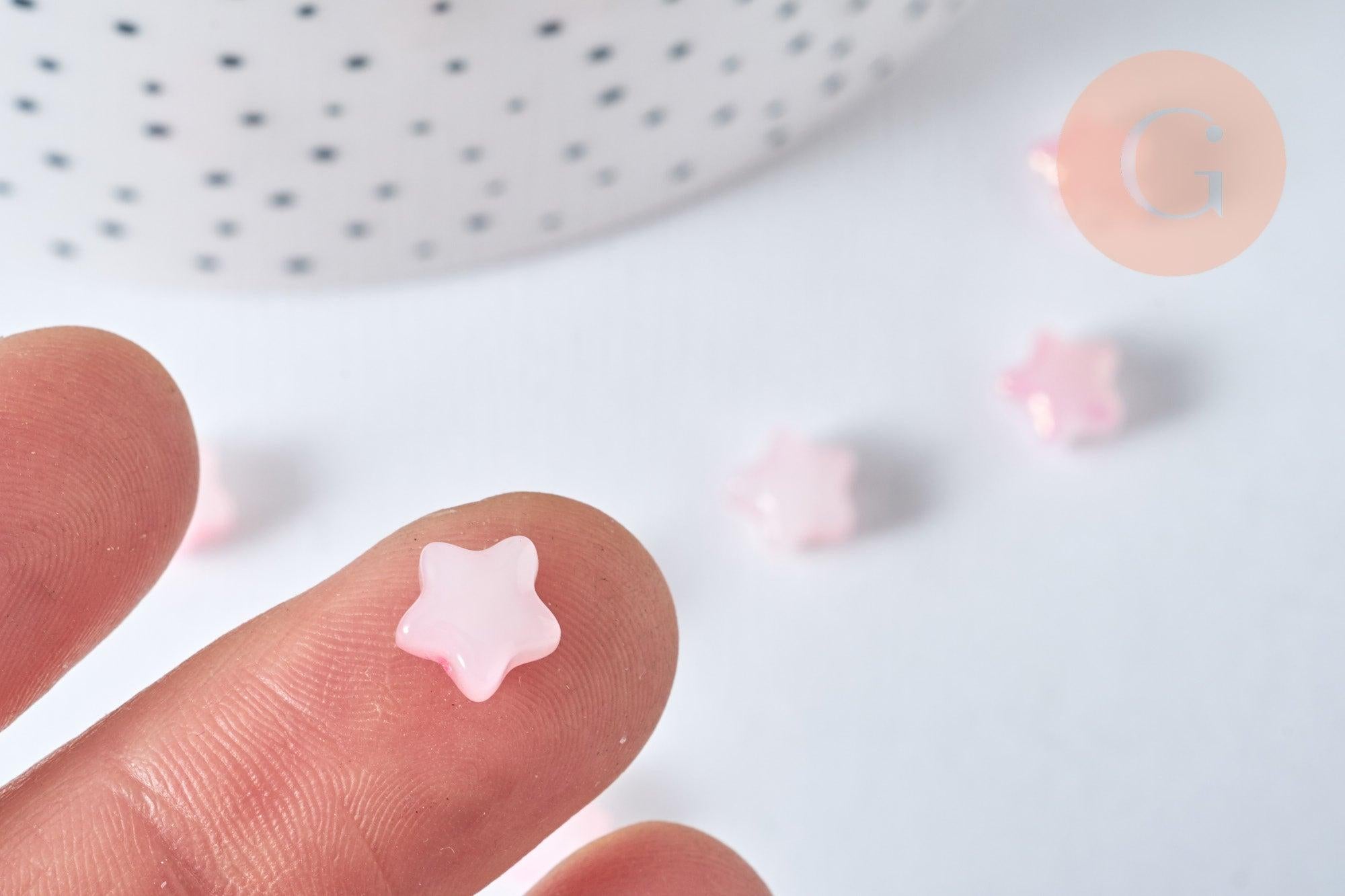 An adorable star-shaped bead in milky pink glass decorated with glitter powder, ideal glass beads for creating DIY jewelry , 8mm